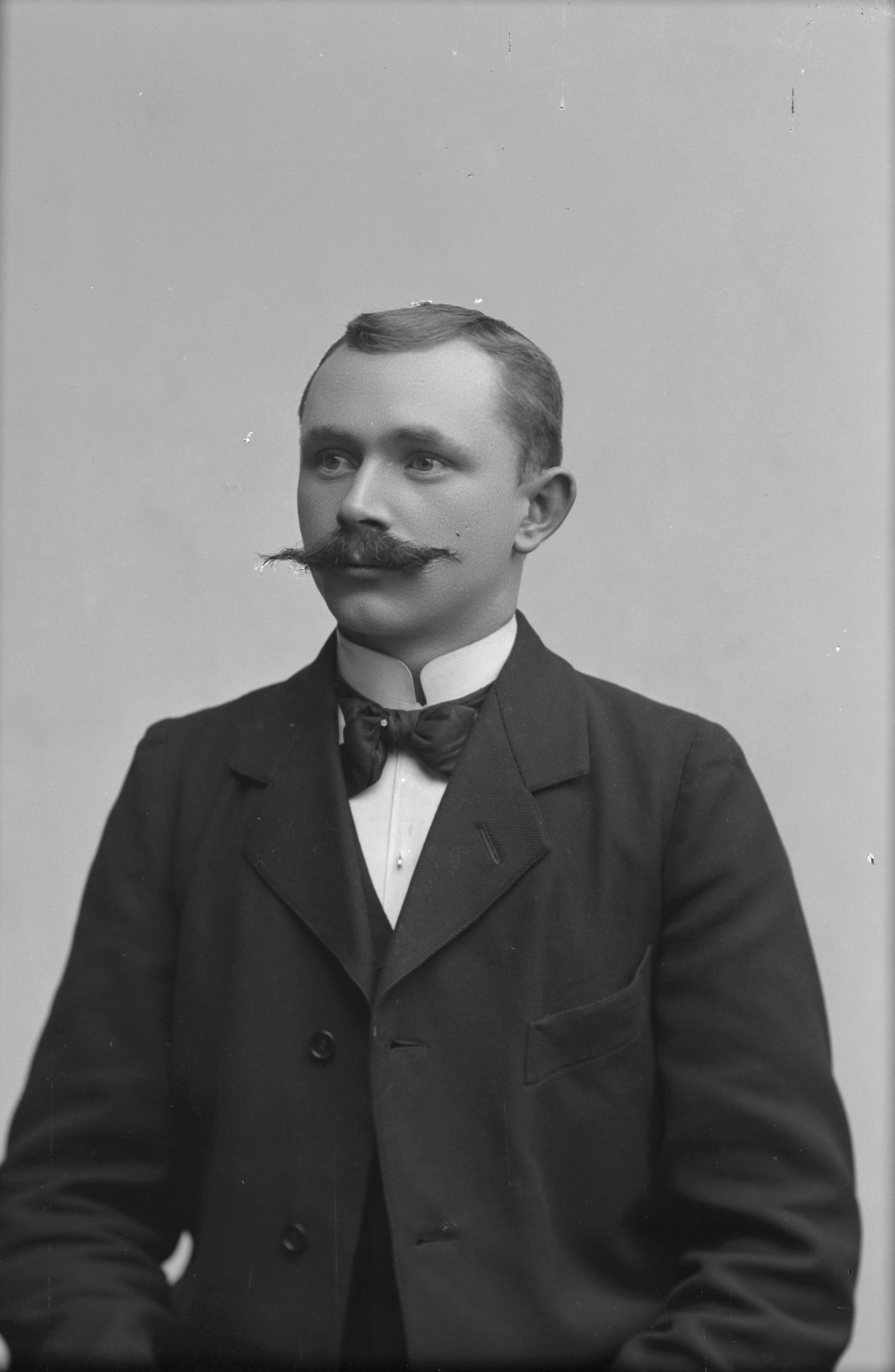 Beskrivning: Porträtt i halvfigur av A. F. Carlsson.