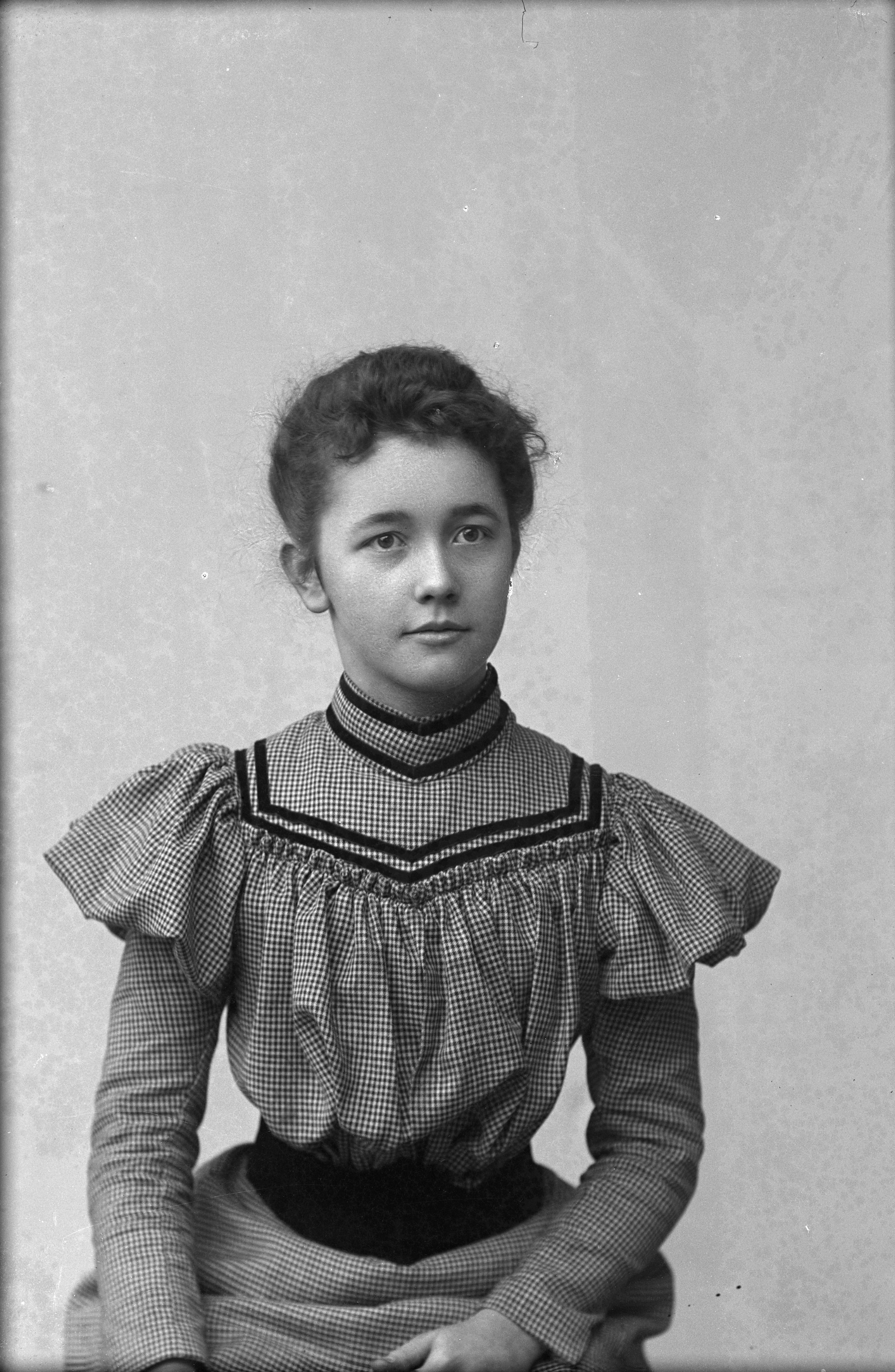 Beskrivning: Porträtt i halvfigur av Ellen Gerle.