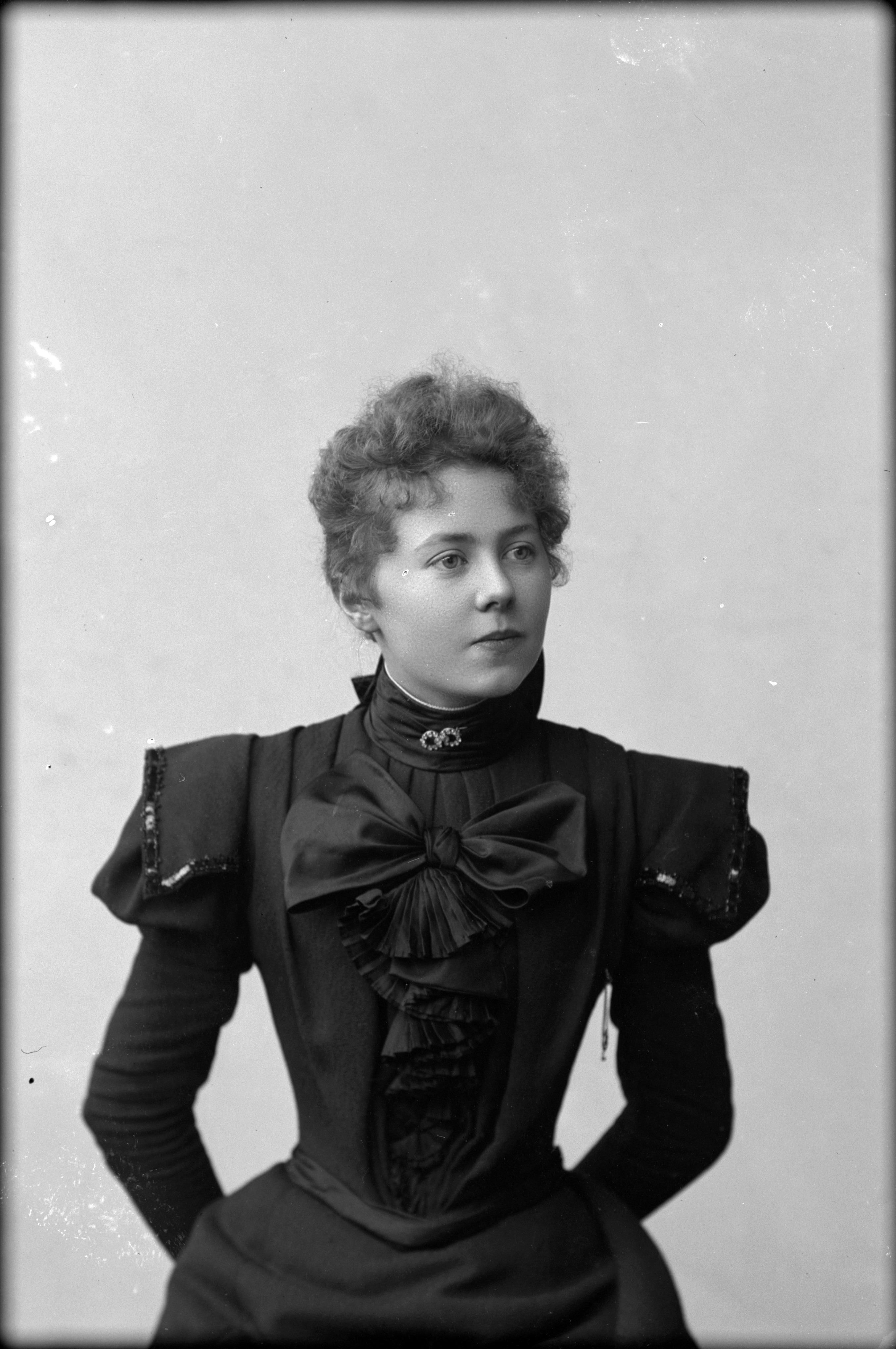 Beskrivning: Porträtt i halvfigur av Edith Åström.