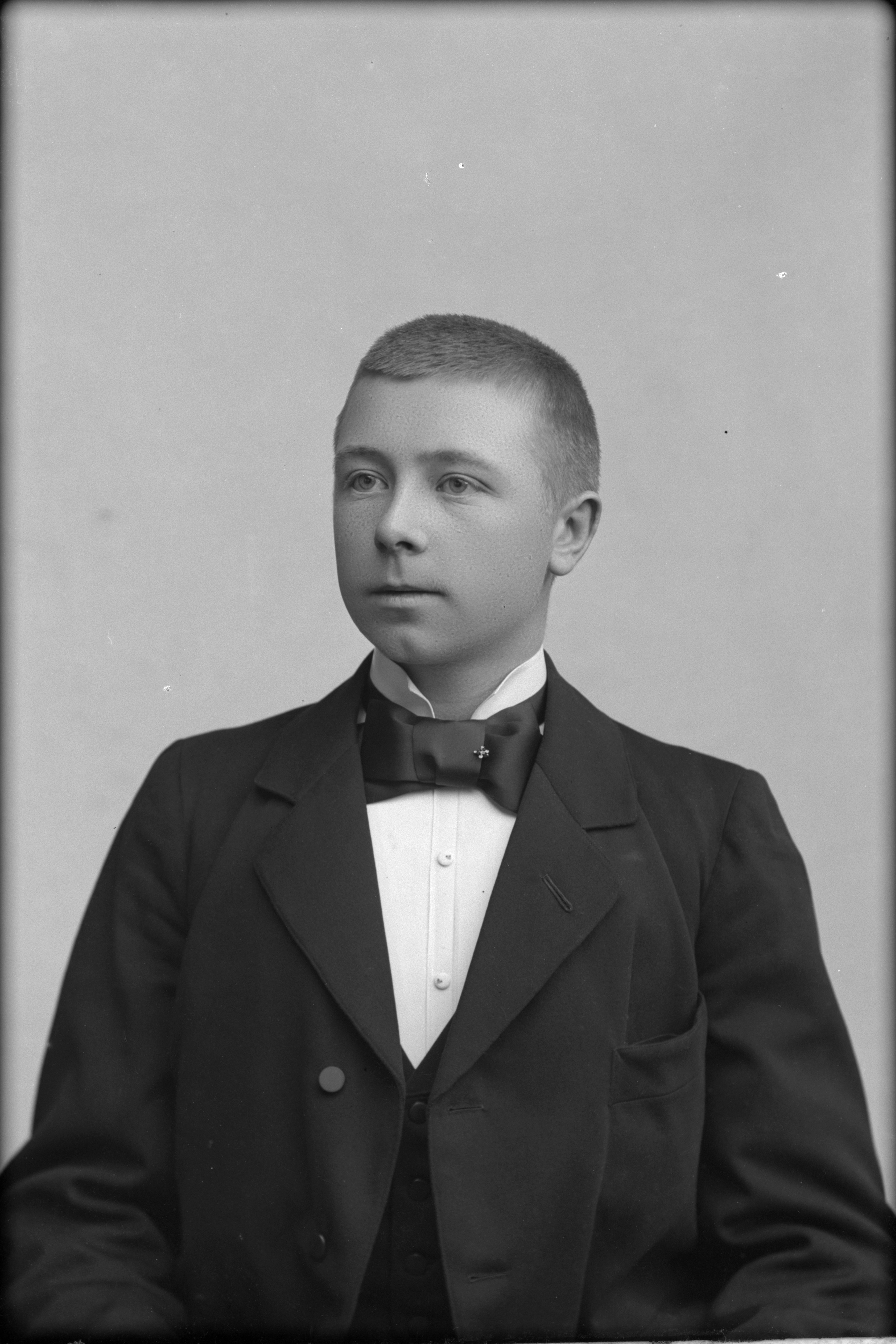 Beskrivning: Porträtt i halvfigur av Ivar L. Jacobsson.