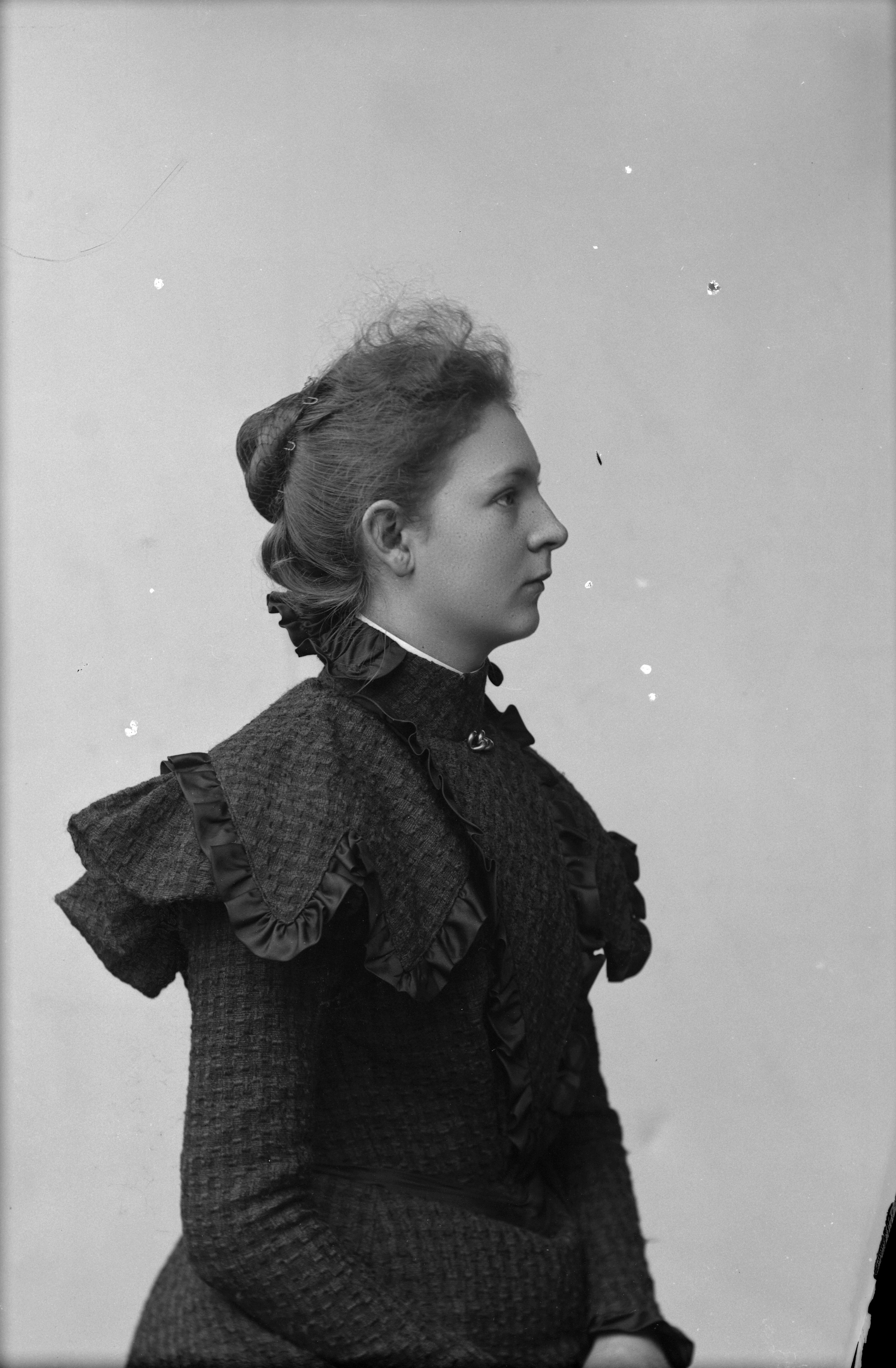 Porträtt i halvfigur, profil, av Gertrud Ekströmer /Norra Vallgatan.