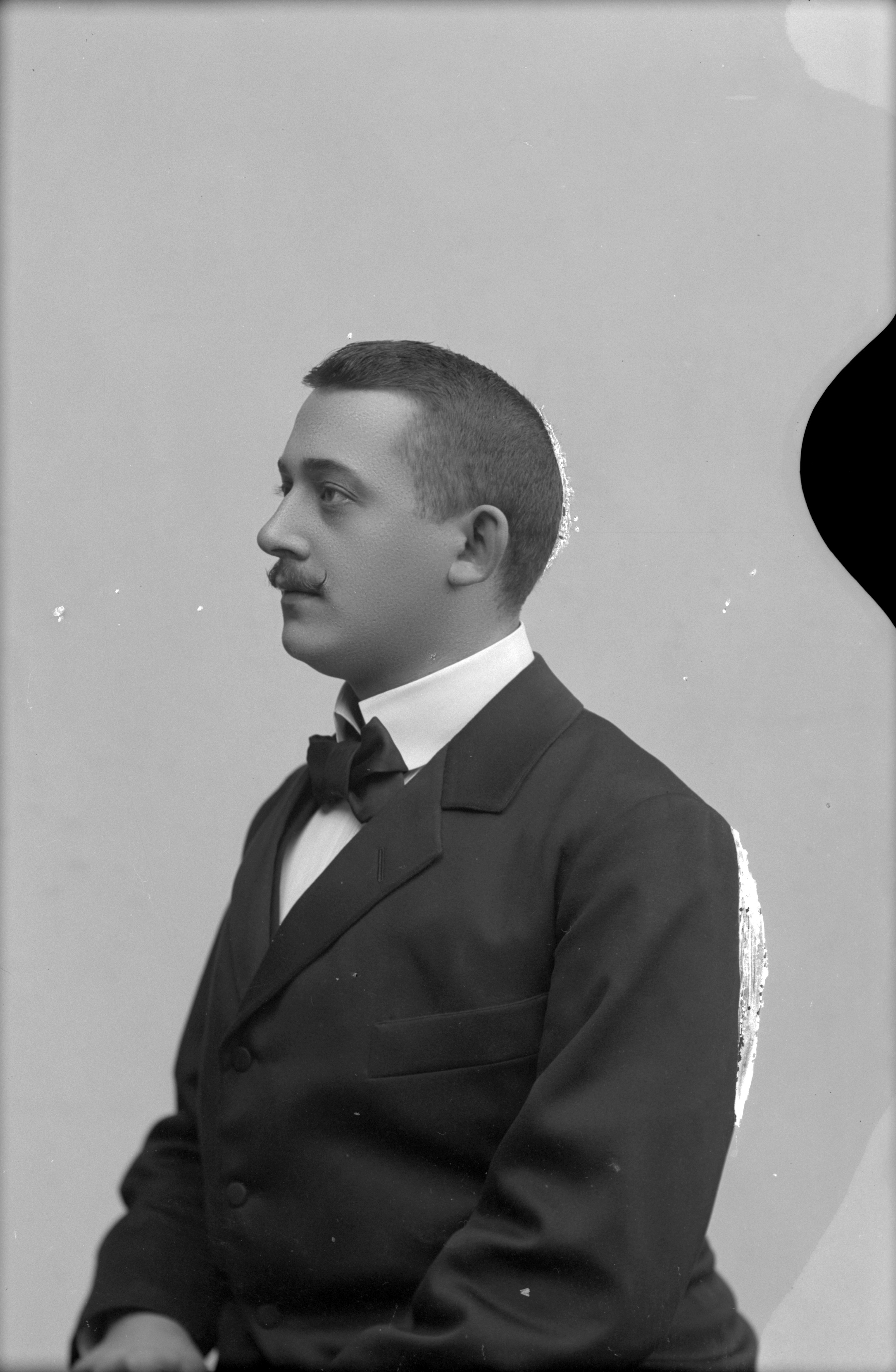 Porträtt i halvfigur, profil, av herr Lindberg.