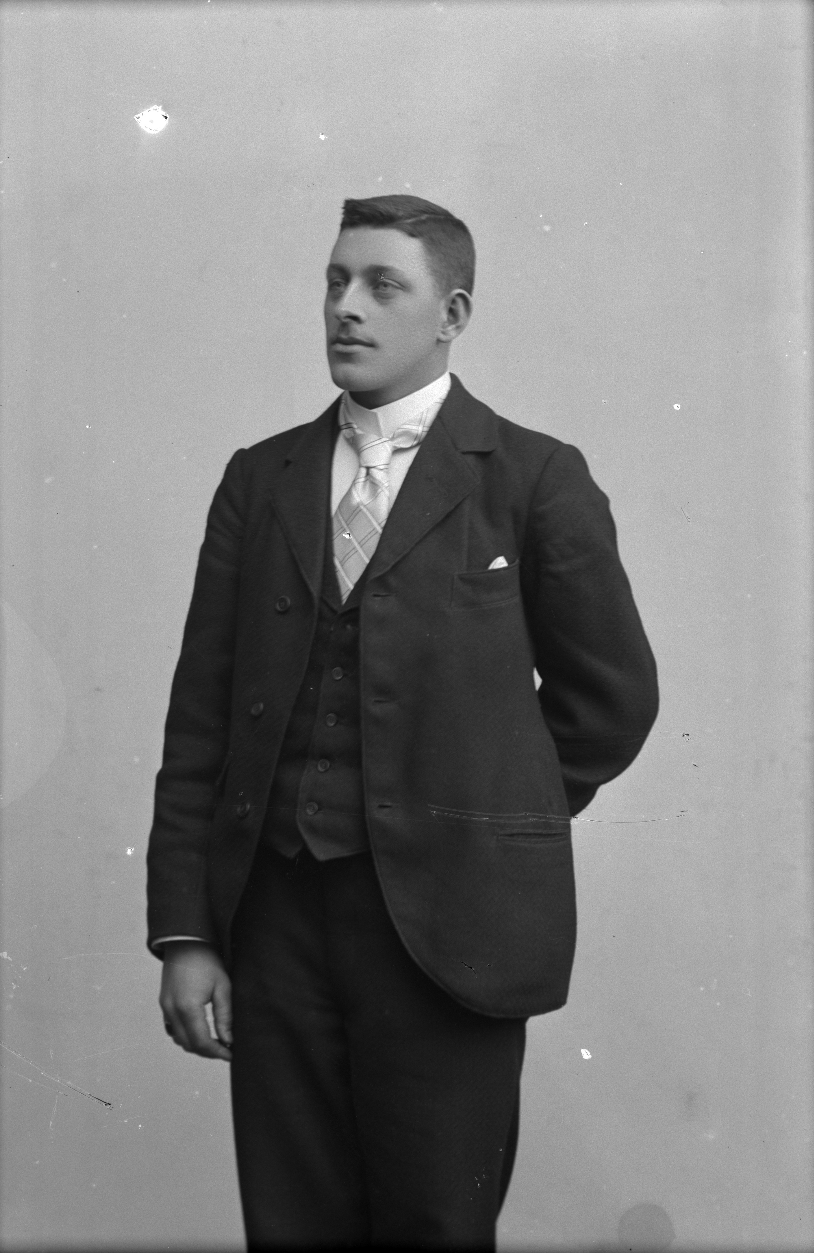 Porträtt i helfigur av Gustaf Scotte, student på Hvilan.