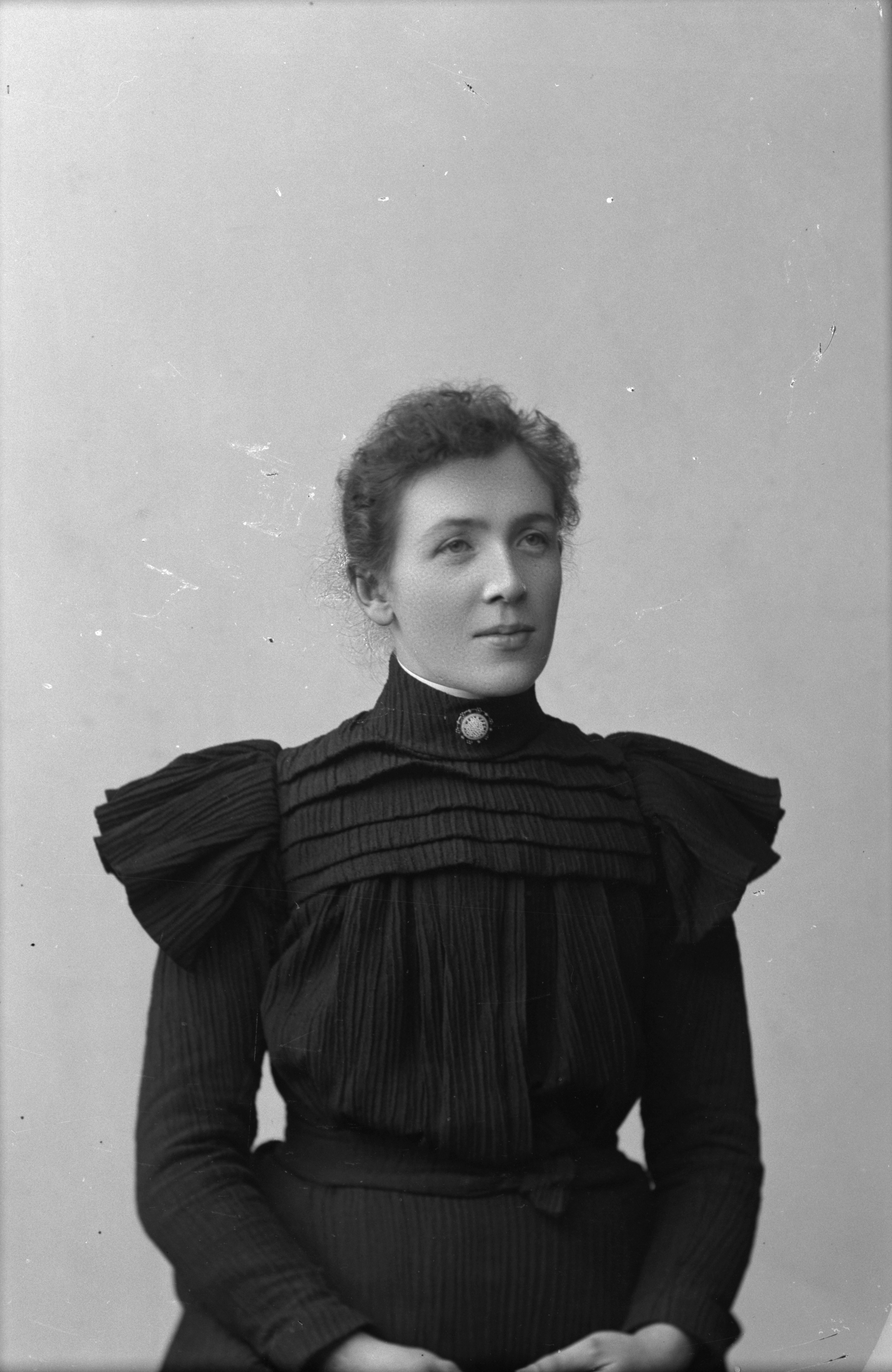 Beskrivning: Porträtt i halvfigur av fru Norling.
