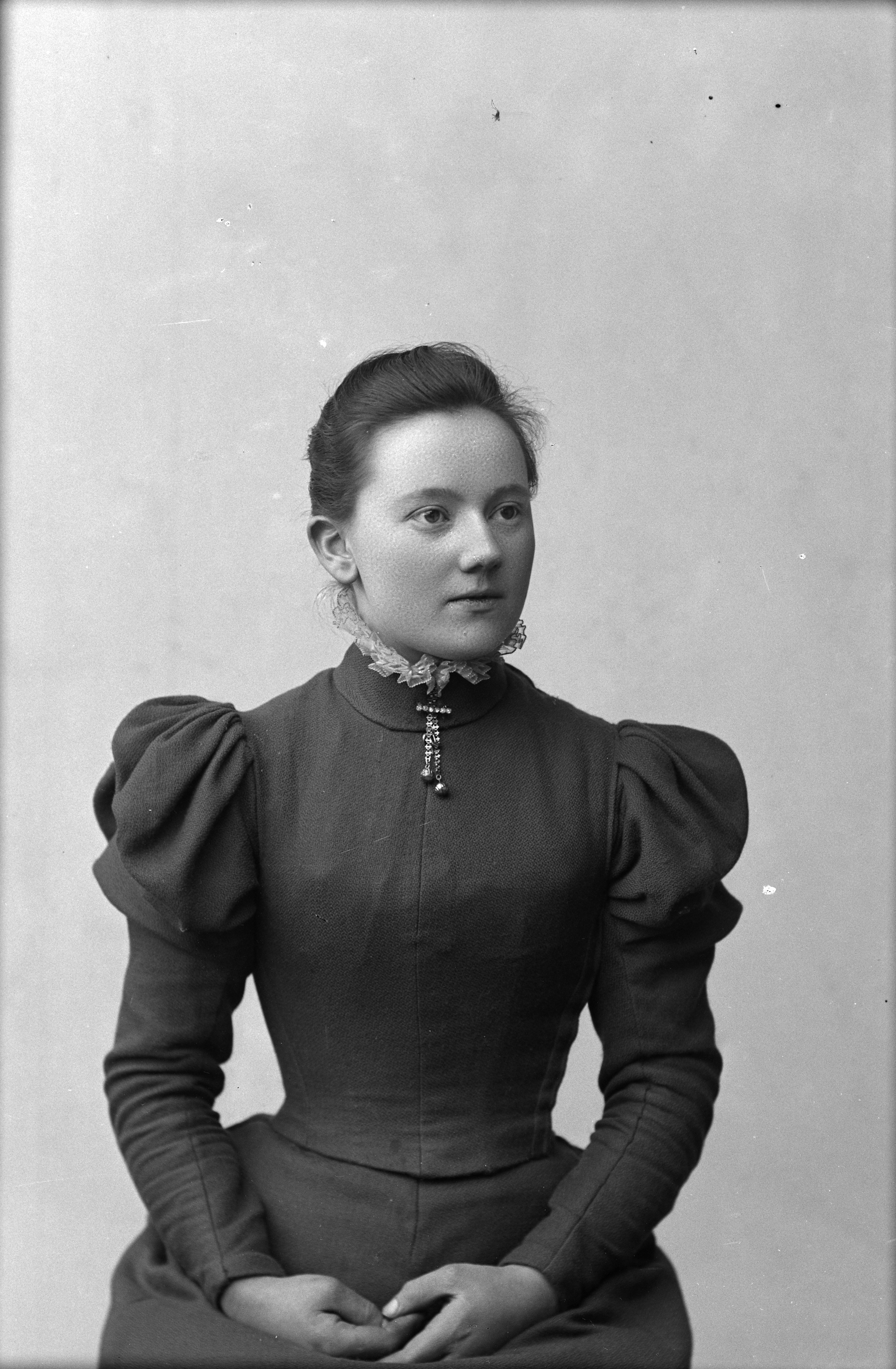 Beskrivning: Porträtt i halvfigur av Anna Johansson.
