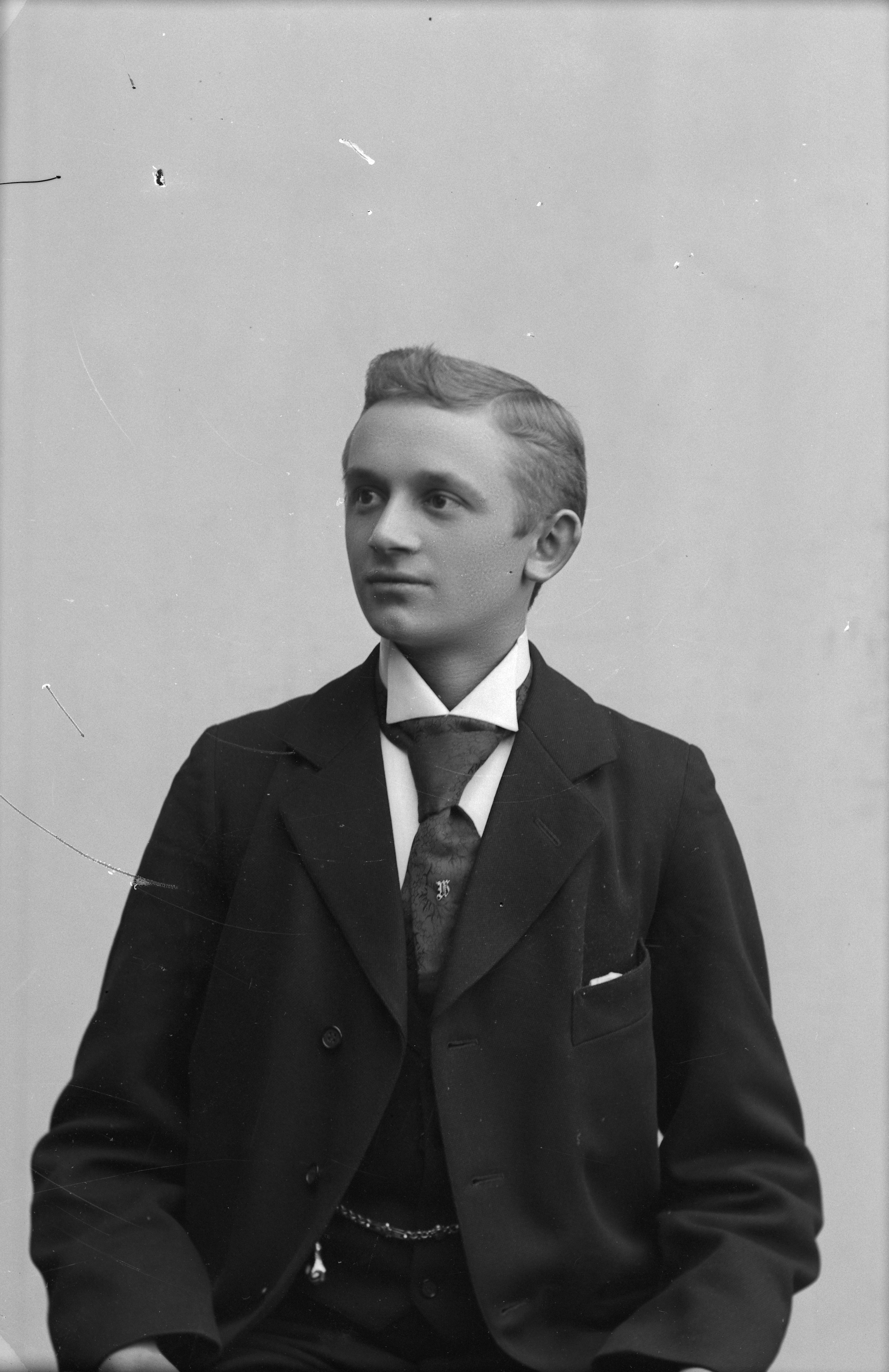 Beskrivning: Porträtt i halvfigur av V. Fredriksson.