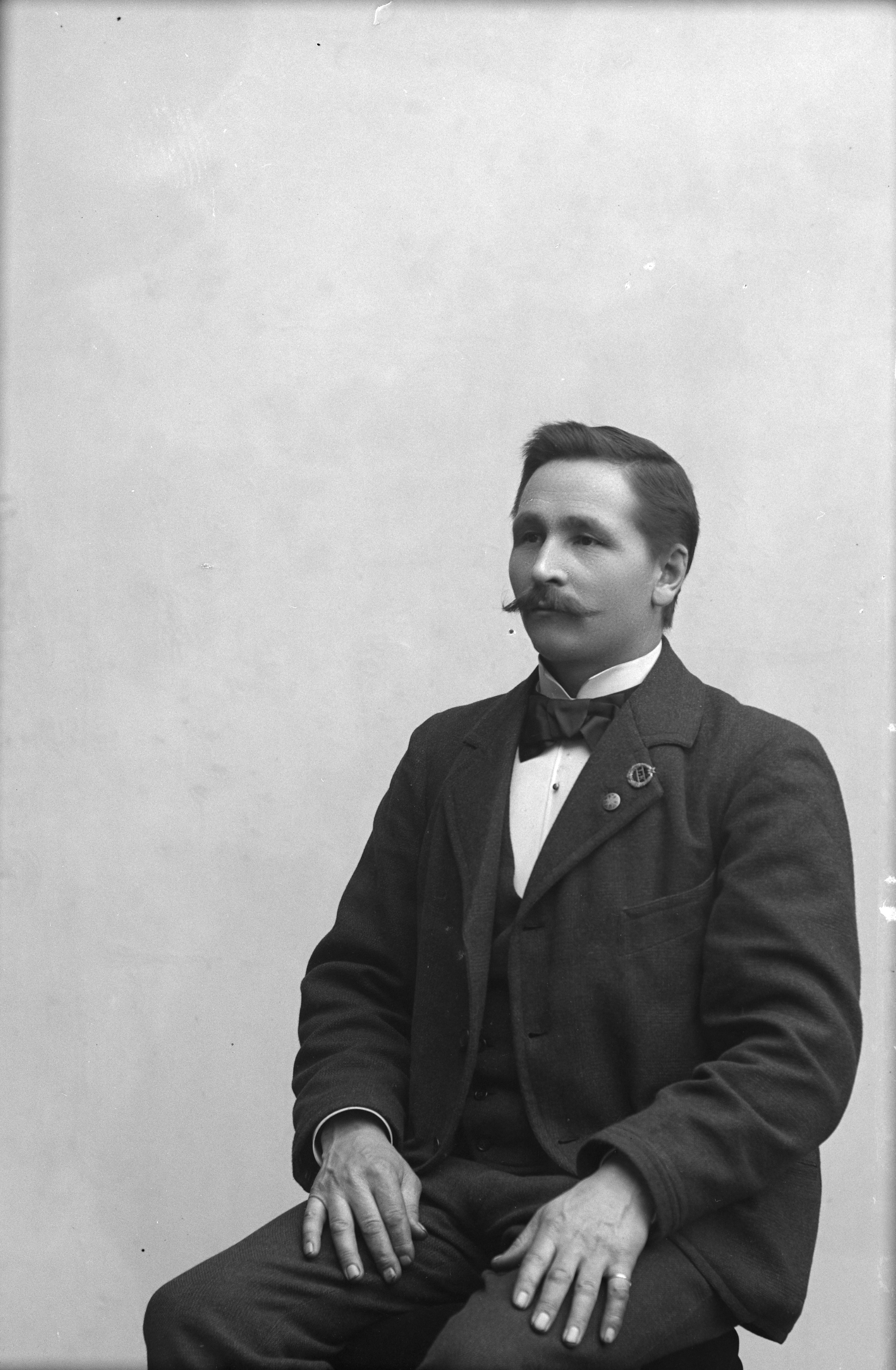 Beskrivning: Porträtt i helfigur av L. J. Larsson.