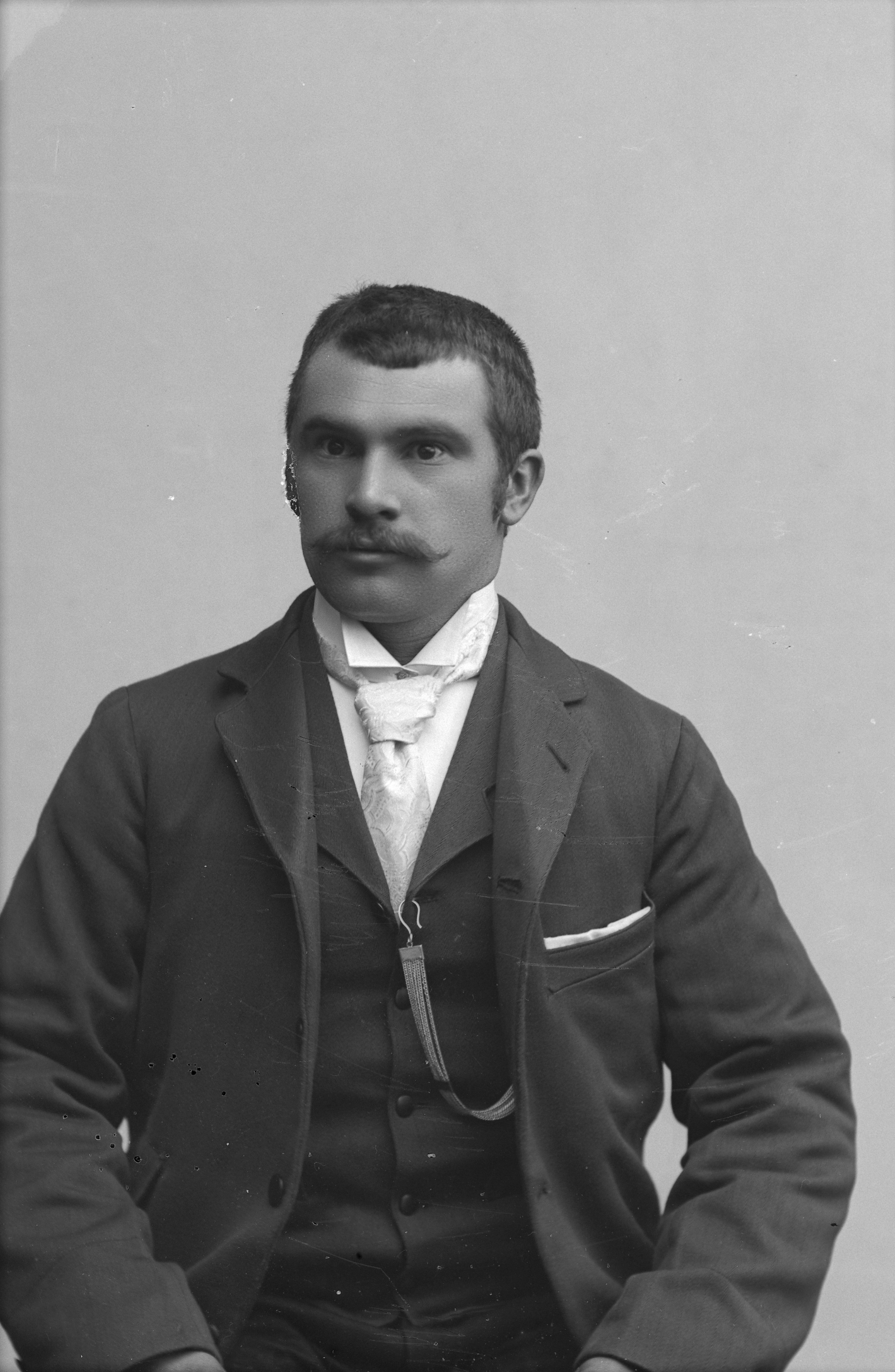 Beskrivning: Porträtt i halvfigur av P. N. Nilsson.