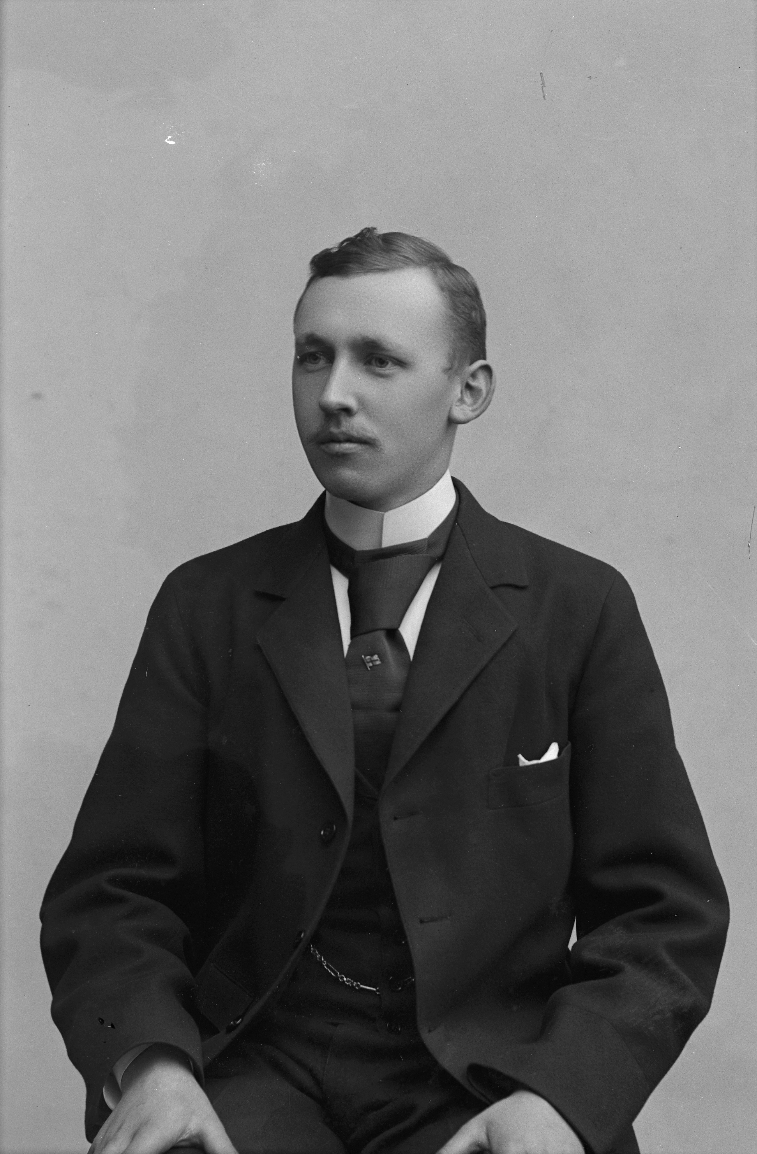 Beskrivning: Porträtt i halvfigur av F. Dahl.