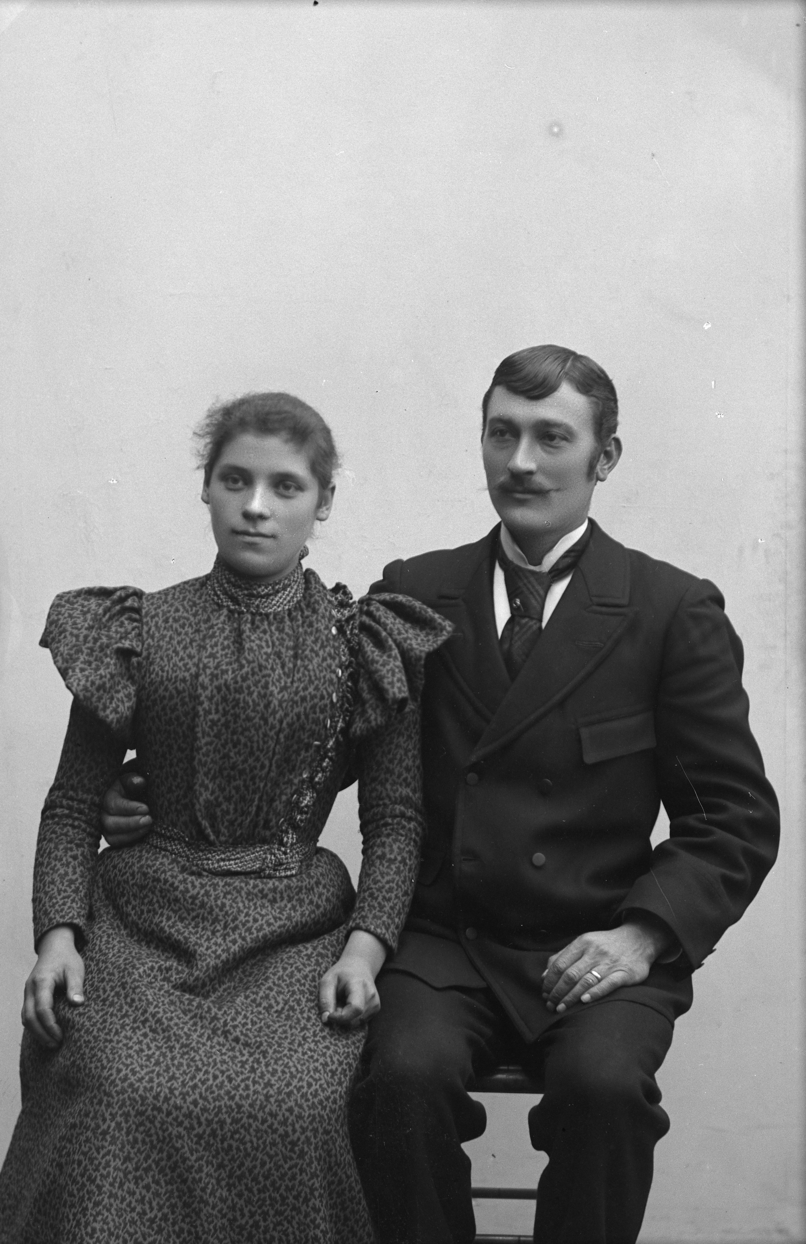 Beskrivning: Porträtt i helfigur av herr Möller med fru.