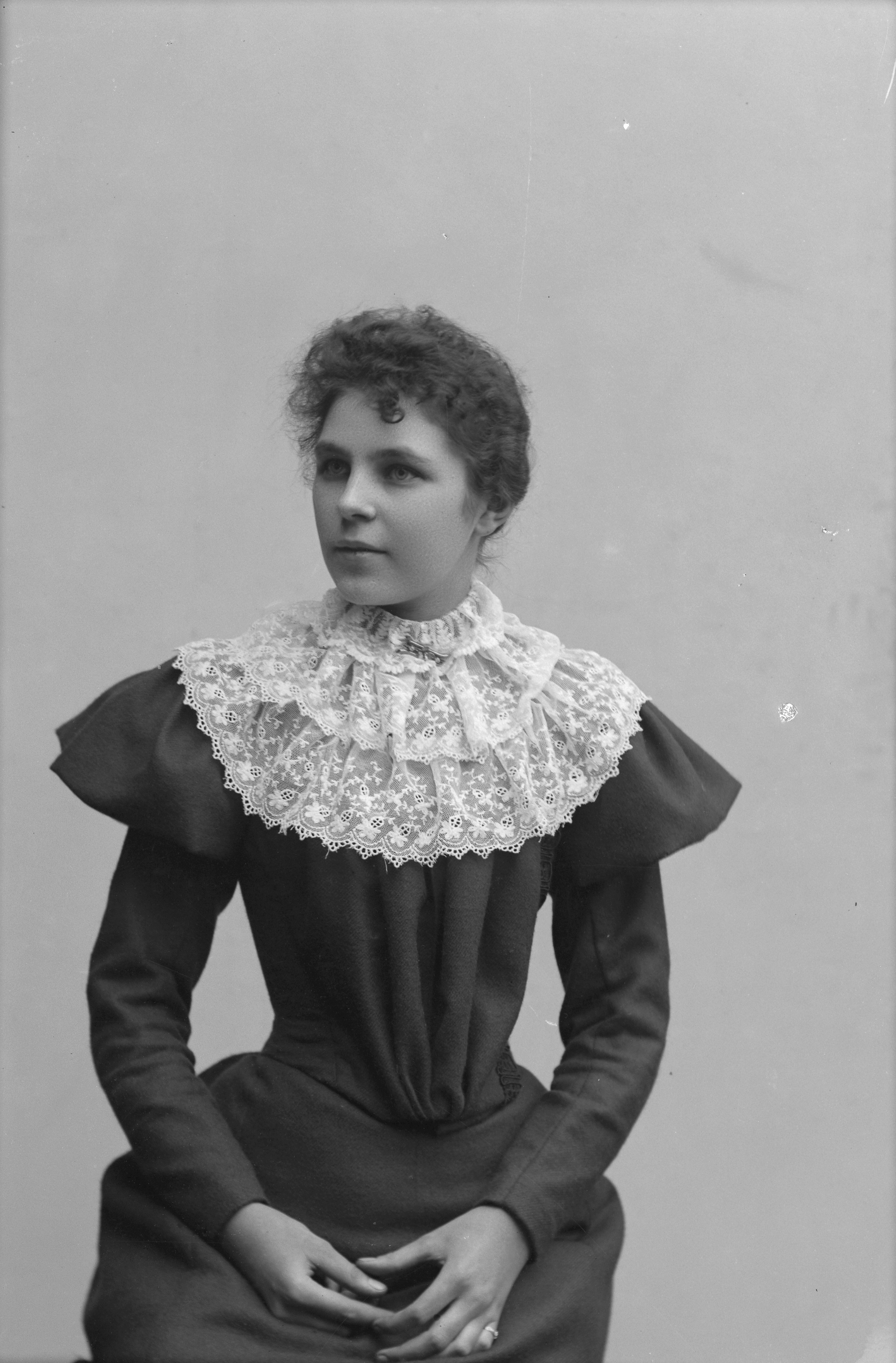 Beskrivning: Porträtt i halvfigur av Ida Berg.