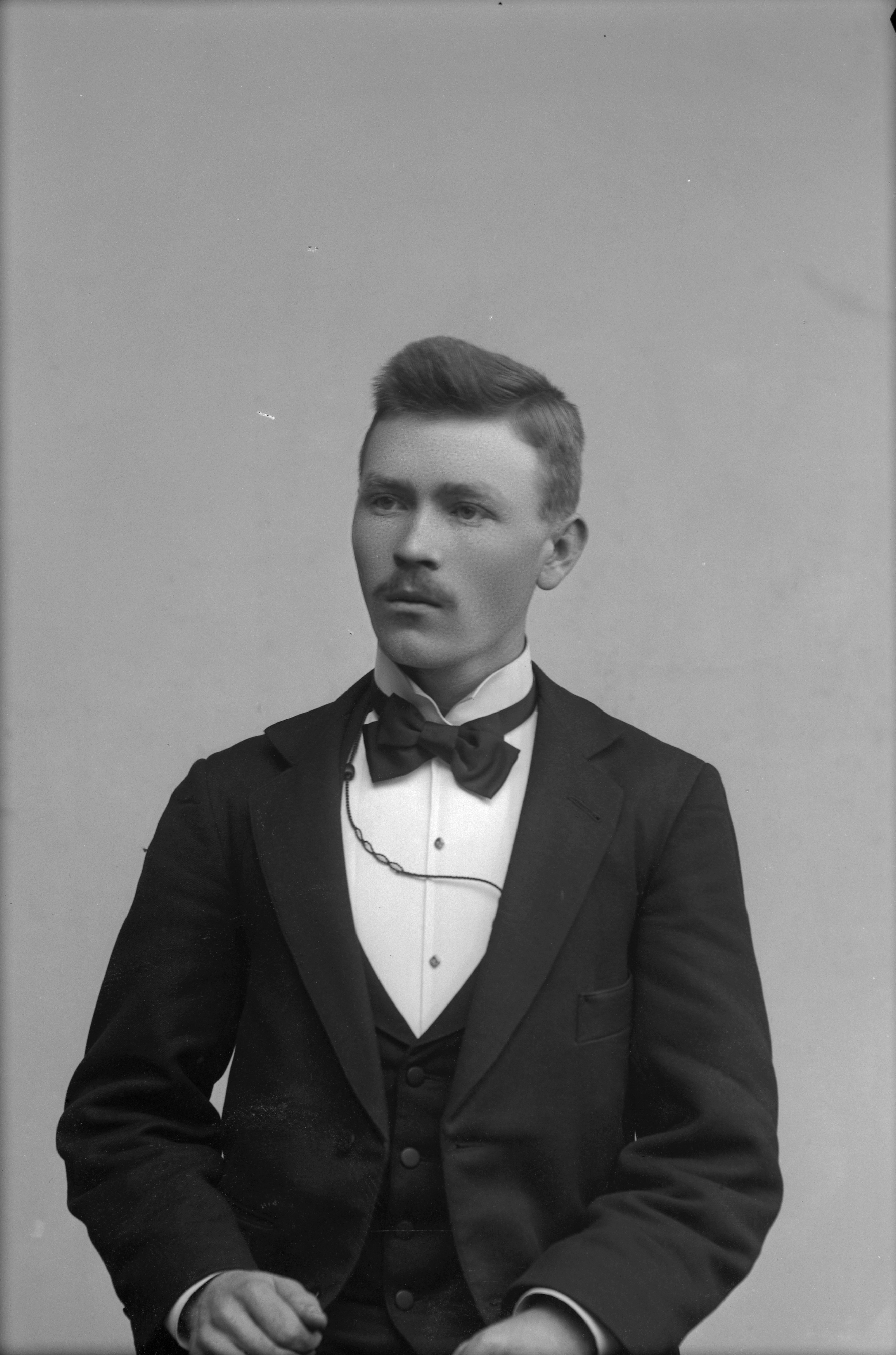 Beskrivning: Porträtt i halvfigur av V. Thulin.