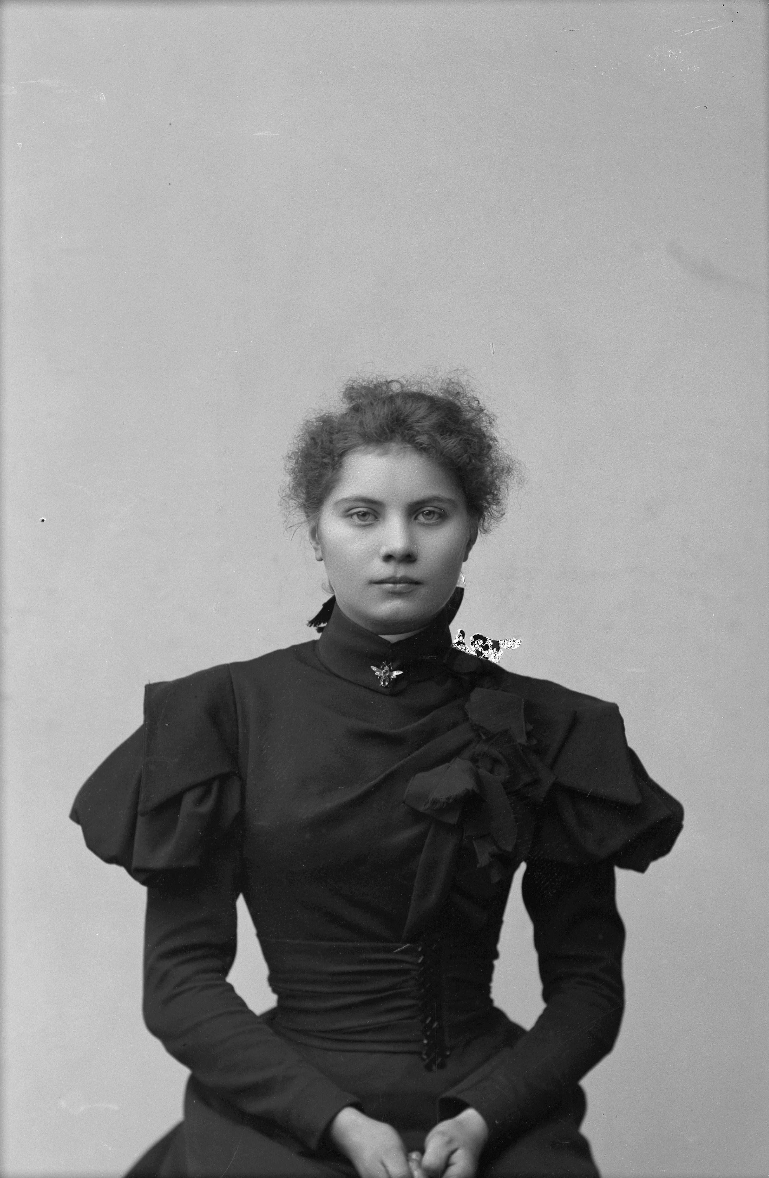 Beskrivning: Porträtt i halvfigur av Ida Hansen.