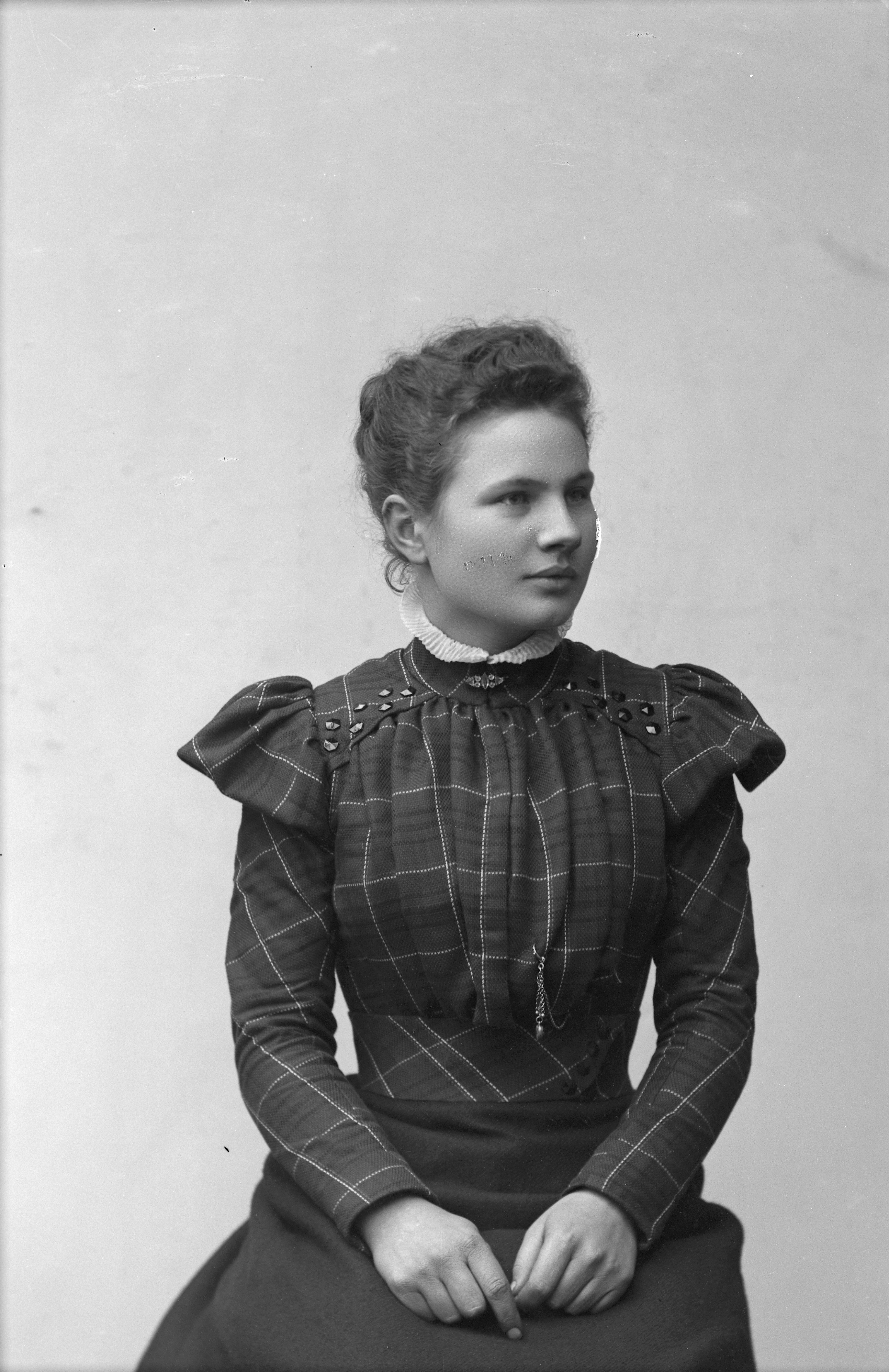Beskrivning: Porträtt i halvfigur av Elisabeth Sjögren.