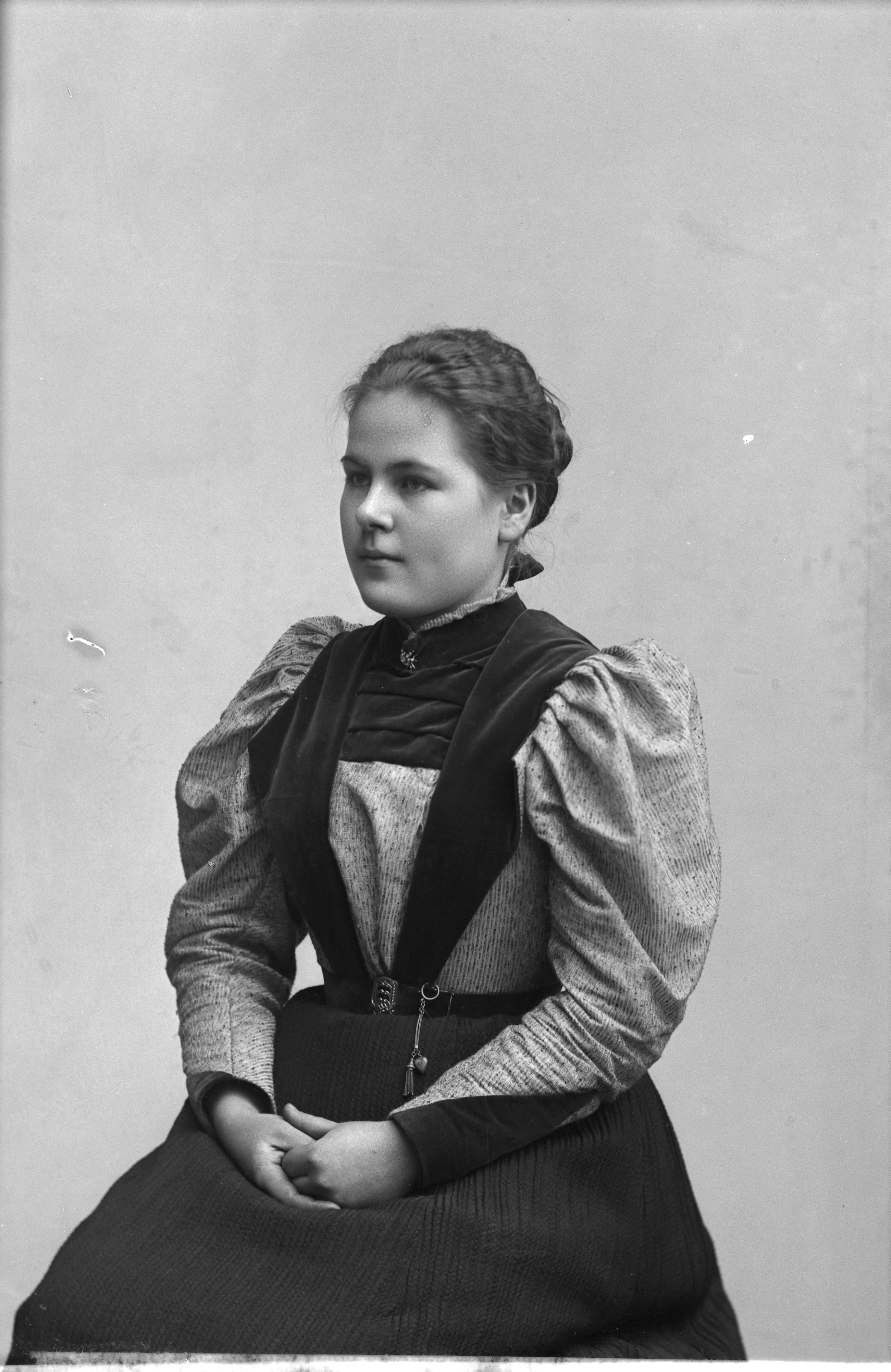 Beskrivning: Porträtt i halvfigur av fröken Agrell.
