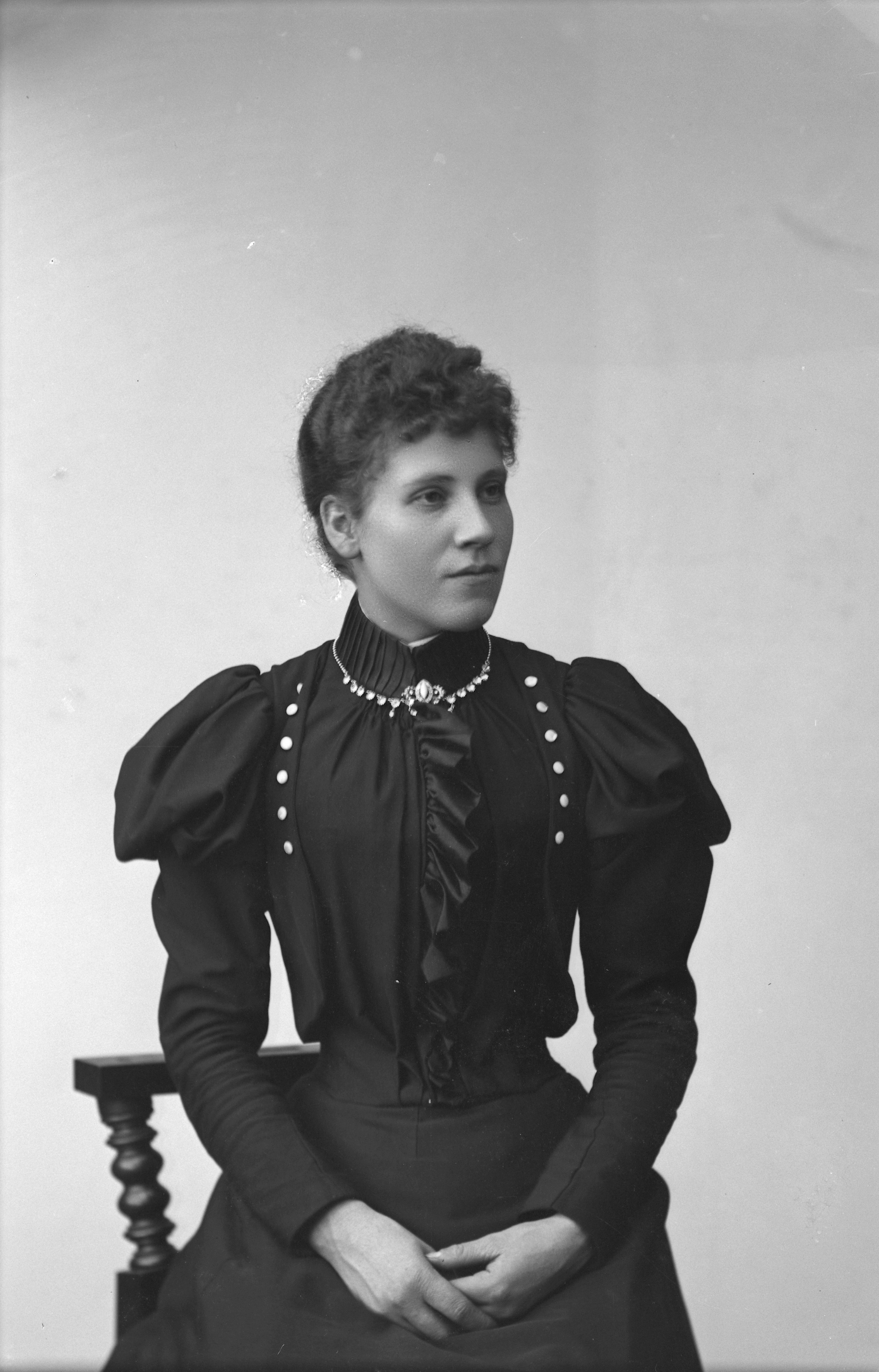 Beskrivning: Porträtt i halvfigur av Hilda Svan /Västergatan.
