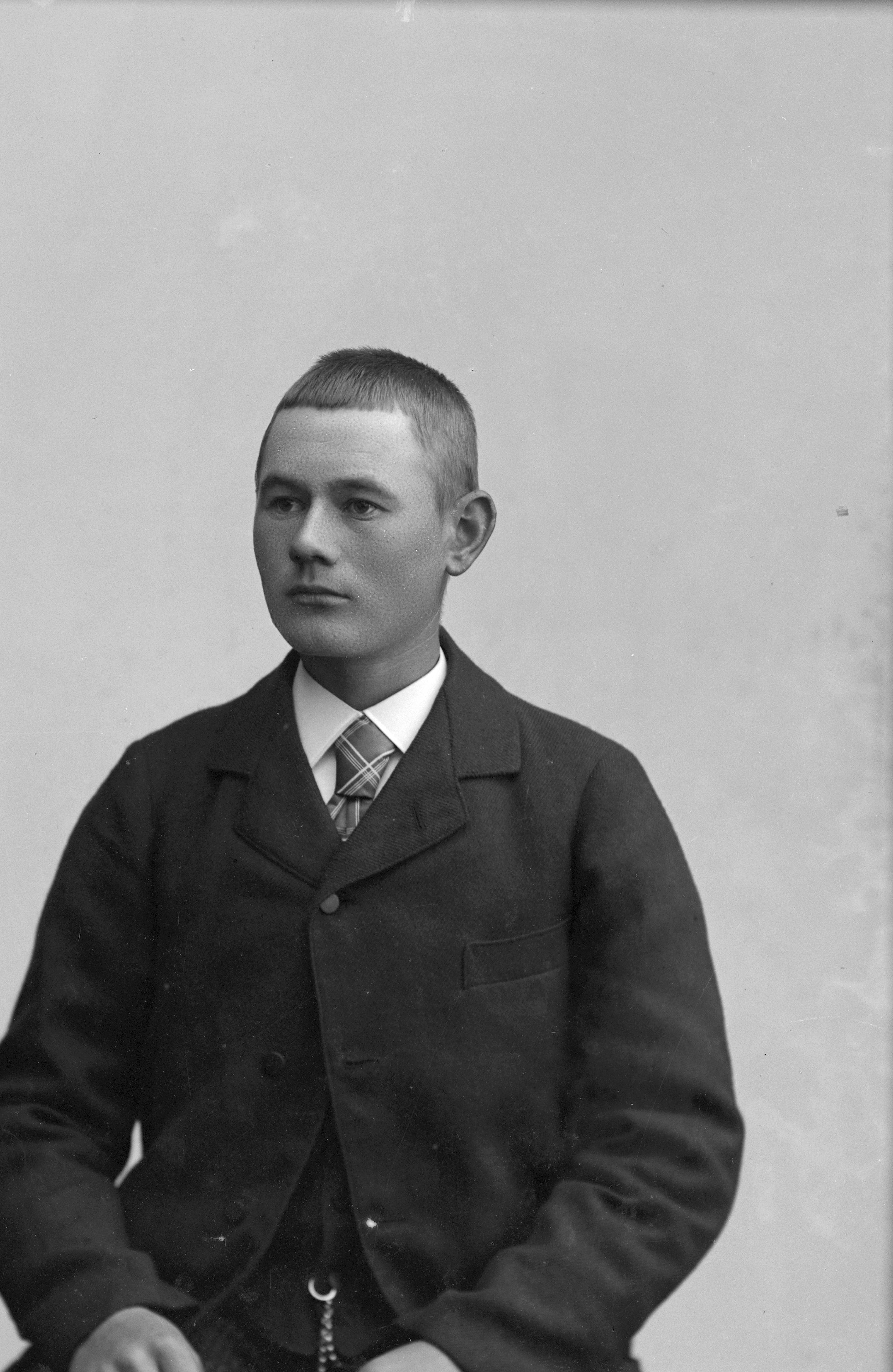 Beskrivning: Porträtt i halvfigur av Clas Jönson.