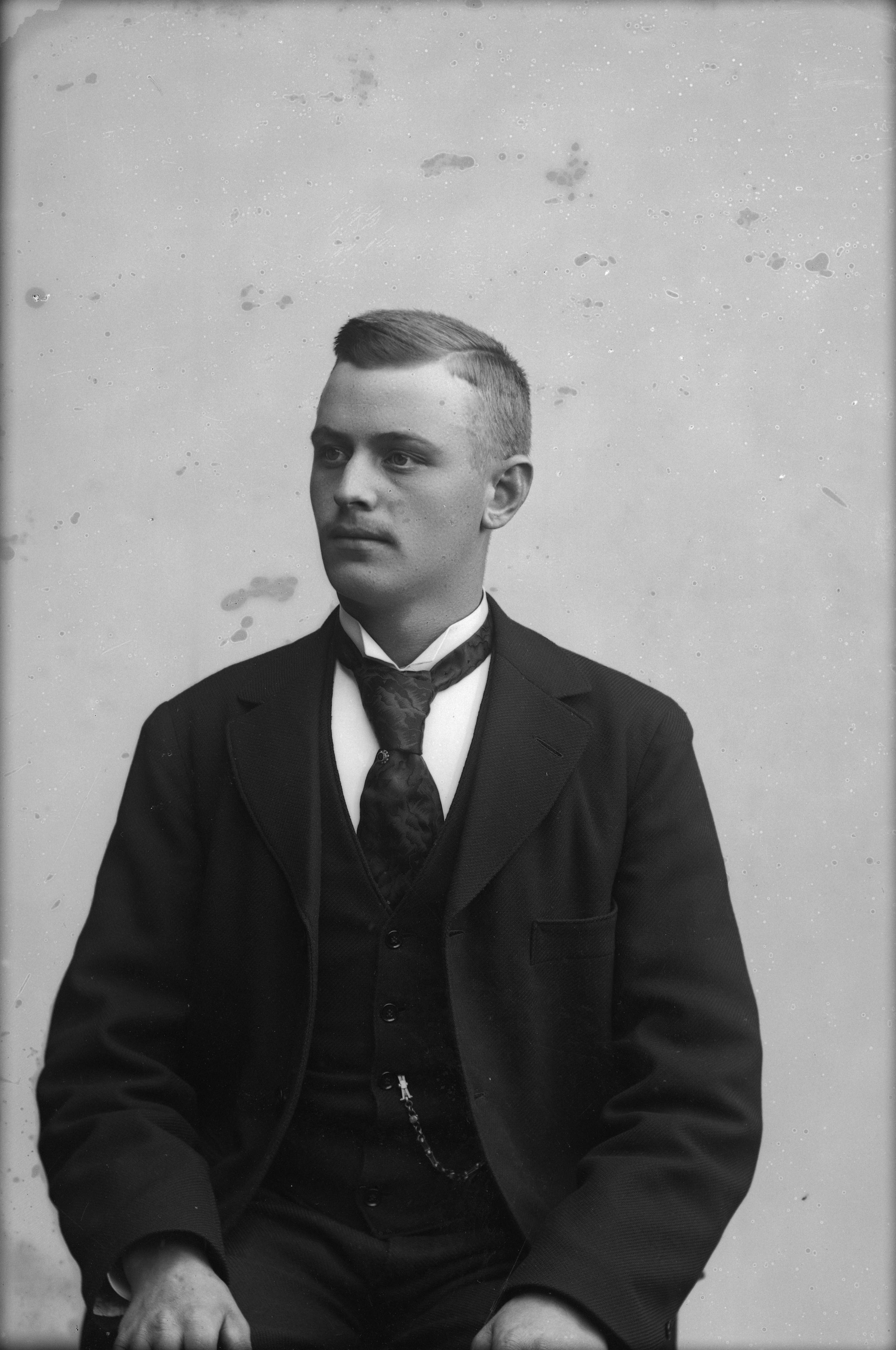 Beskrivning: Porträtt i halvfigur av Ernst Johansson.