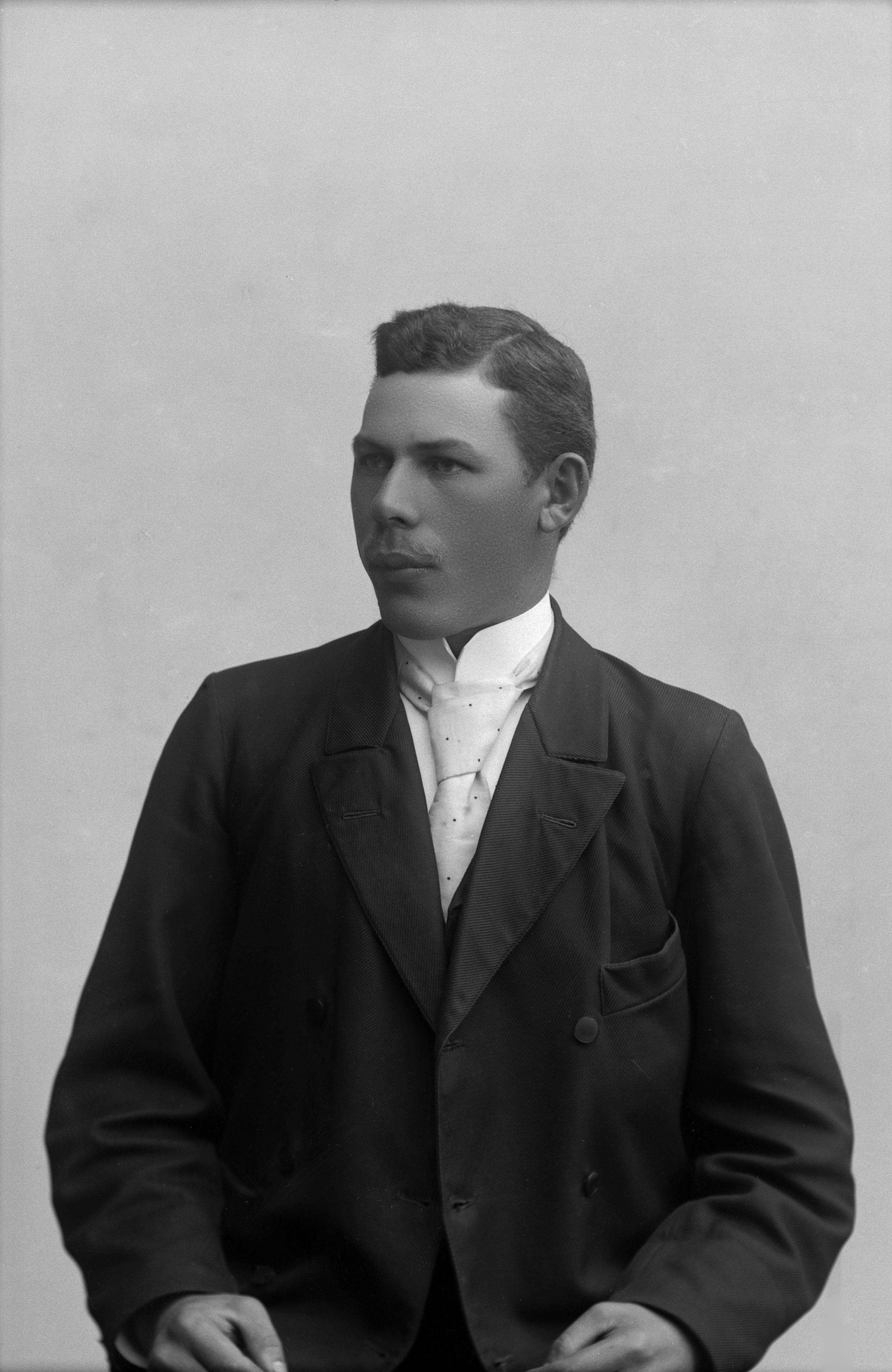 Beskrivning: Porträtt i halvfigur av A. Hjort.