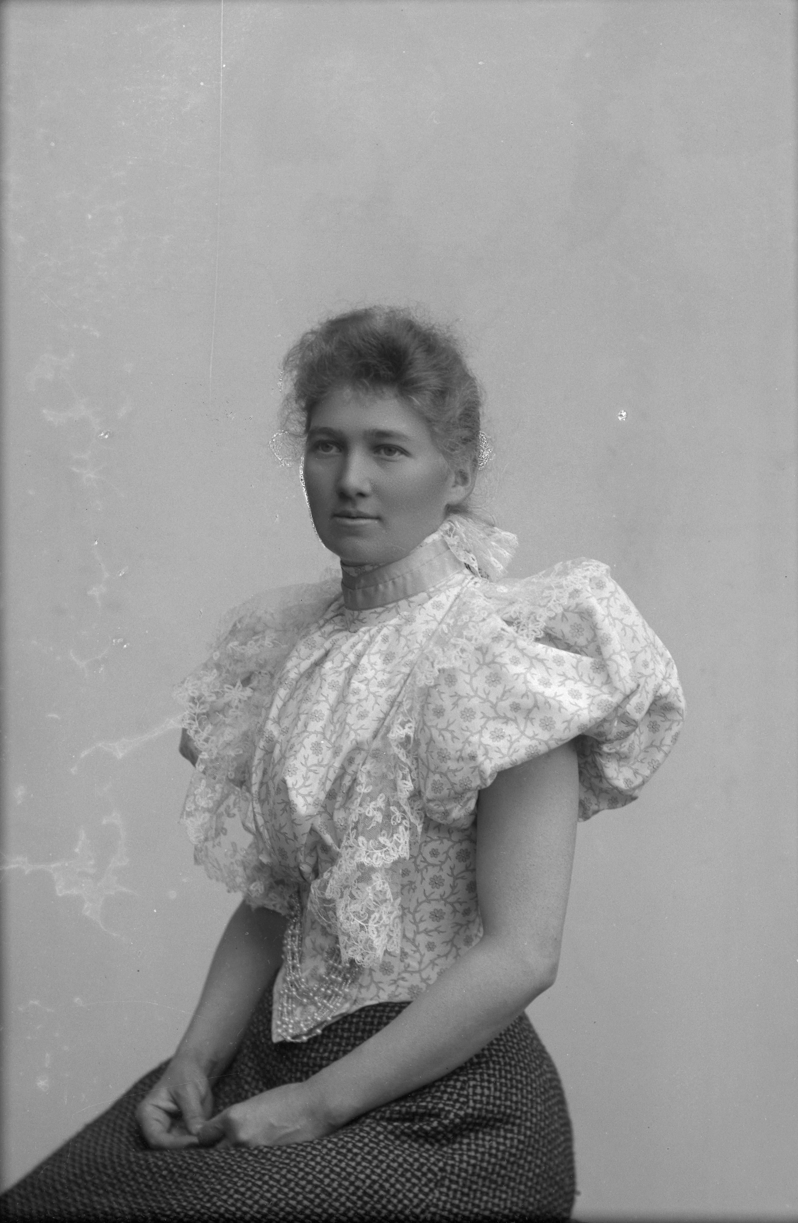 Beskrivning: Porträtt i halvfigur av Anna Lundquist.