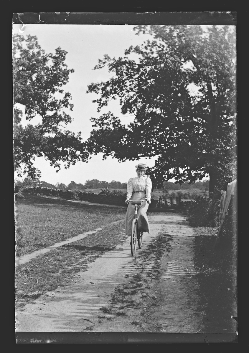 Titel: Bilden visar en kvinna som cyklar på en landsväg på Verkö i Karlskrona skärgård.