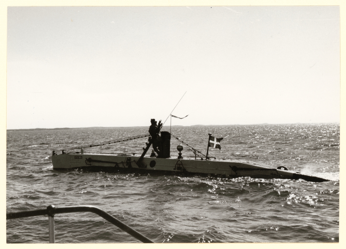 Titel: Bilden visar djvärgubåten Spiggen till havs.