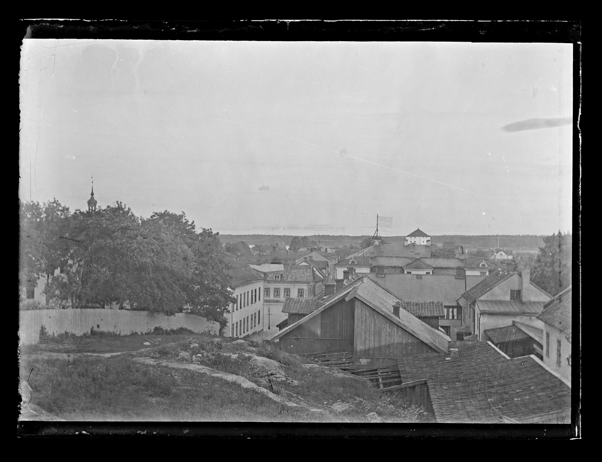 Titel: Bilden föreställer en stadsvy från Köping år 1900.