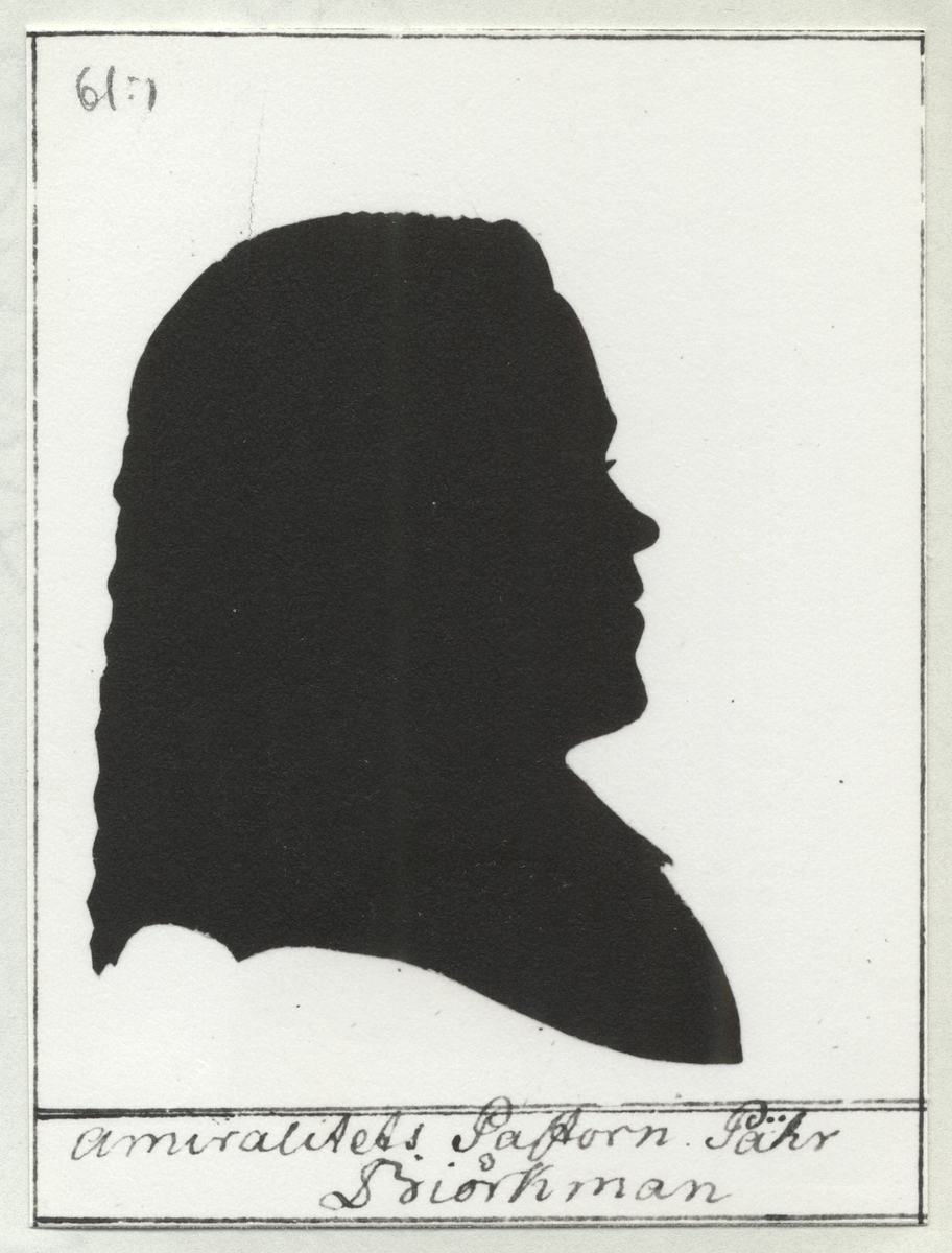Silhuettporträtt. Utförda av Olof Bernhard Schalin c:a 1771-1774. (Huvudsakligen Karlskrona-och Norrköpingsbor). Fotona uppklistrade på papper i svart pärm. Okänt var originalen finns. Namnregister medföljer albumet.