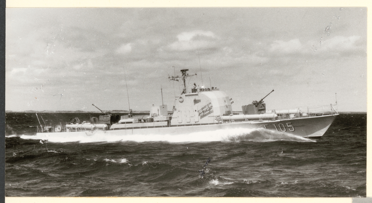 Titel: Bilden visar torpedbåten Regulus till sjöss från styrbordssidan.