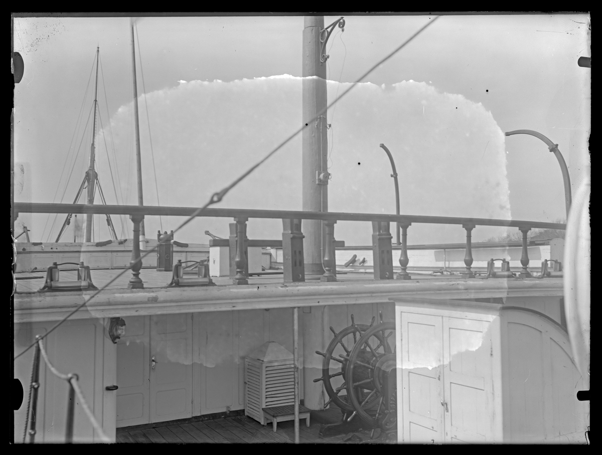 Bilden visar kommandobryggan på ånglinjeskeppet Stockholm under sin tid som logementsfartyg i Karlskrona.