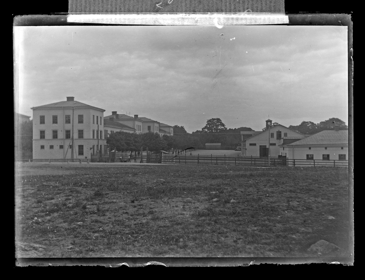 Titel: Bilden visar Dragonkasern vid Djurgårdsbrunnsvägen i Stockholm som revs 1976.