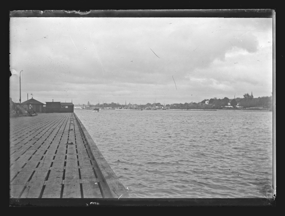 Bilden förställer en vy mot Stockholm gamla stan och Beckholmen. I mitten syns ett eller örlogsfartyg till ankars.