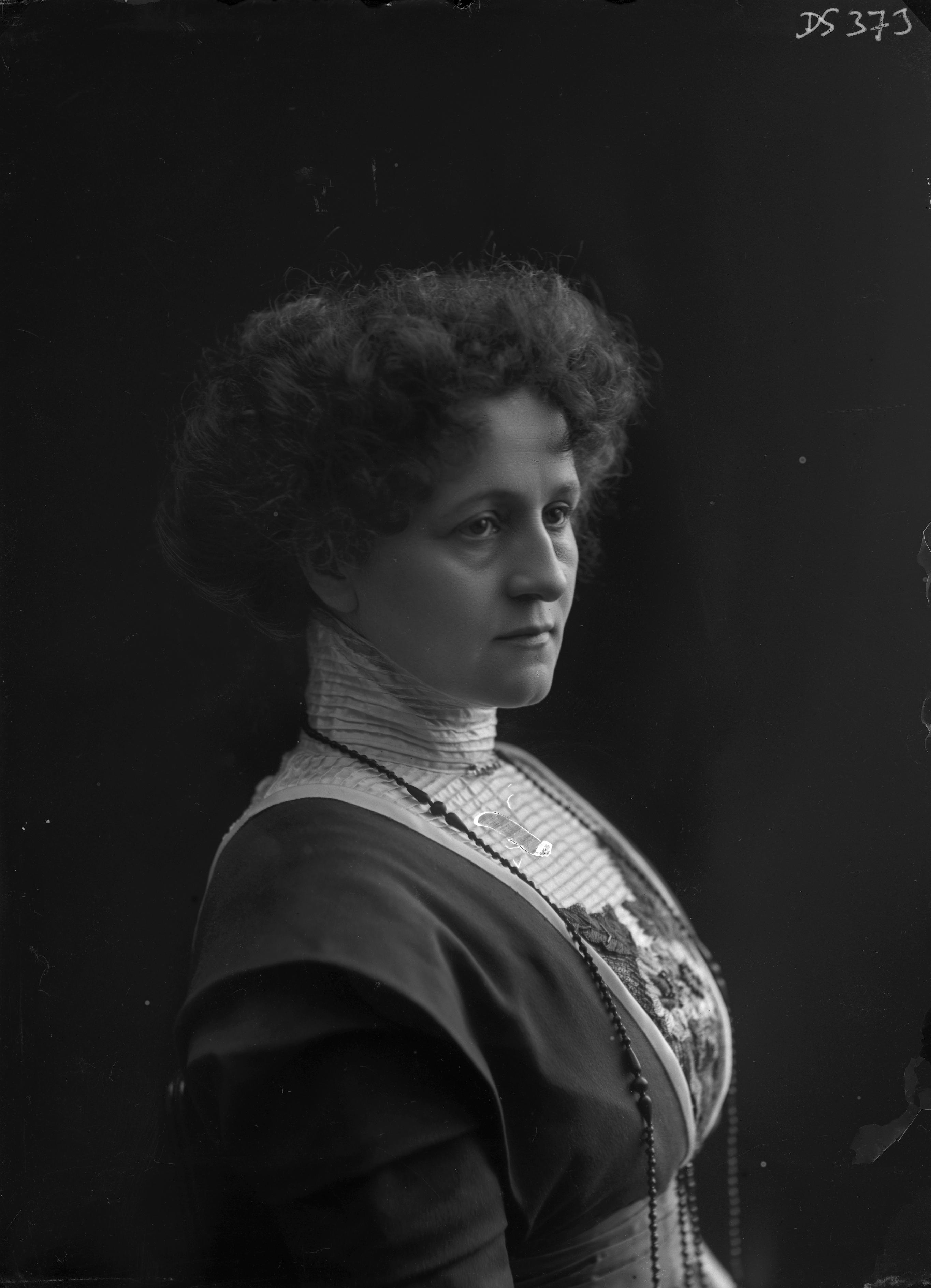 "Teater, Fru Olsson." Kvinnoporträtt.