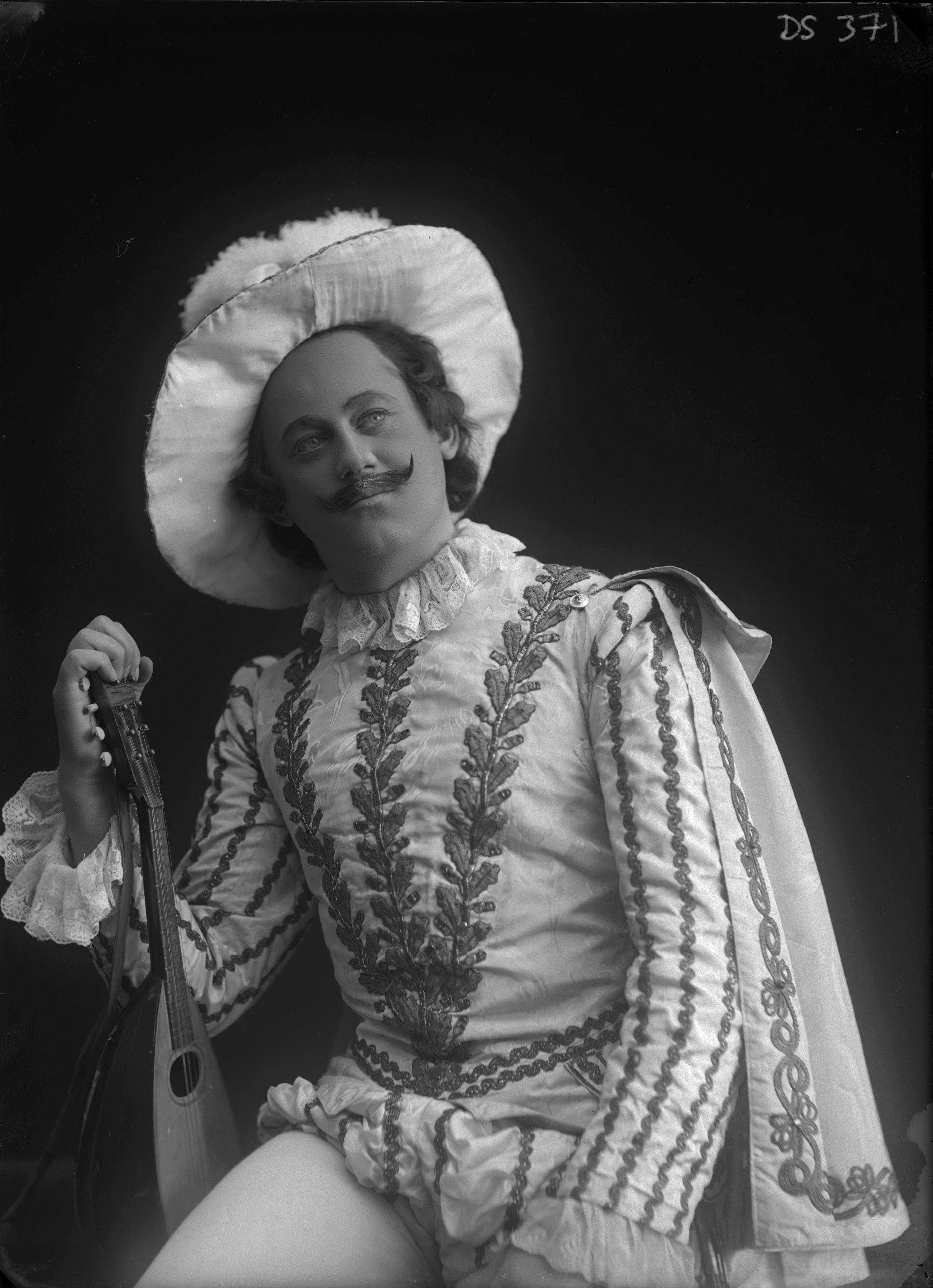 "Ottoson." Man med mandolin, hatt. Halvfigur.