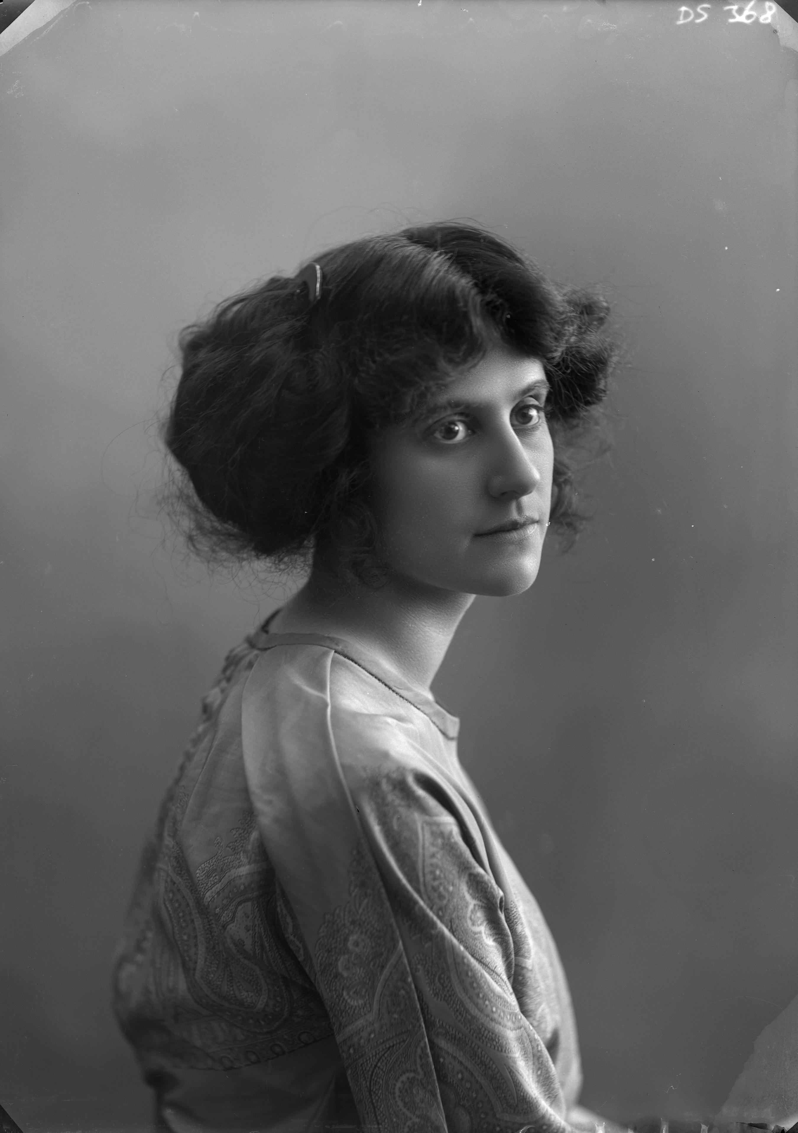 Beskrivning: "Fröken Daphael Fröberg-teater. "Kvinnoporträtt.