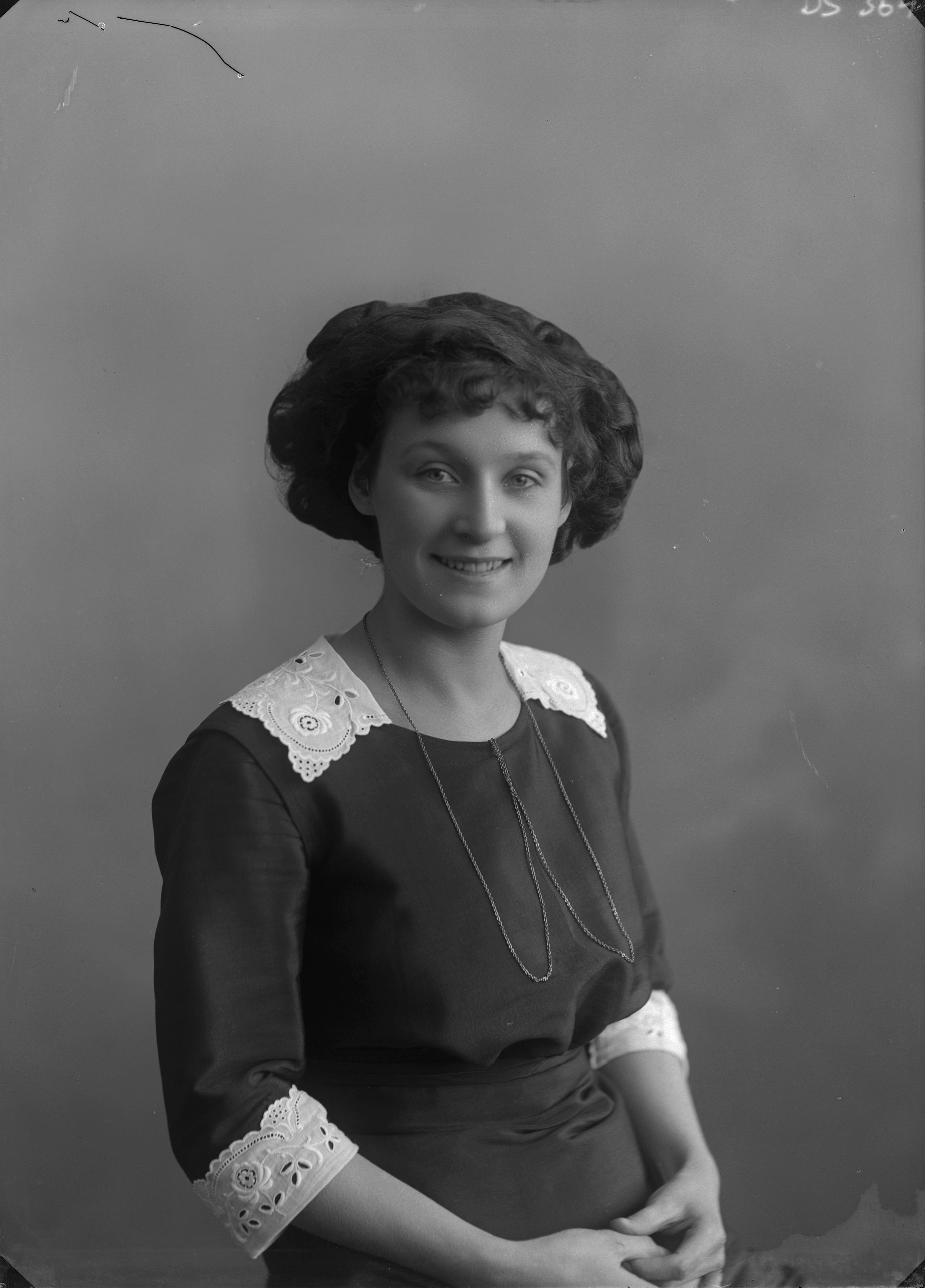 "Fröken Pettersson- teater." Kvinna, halvfigur.