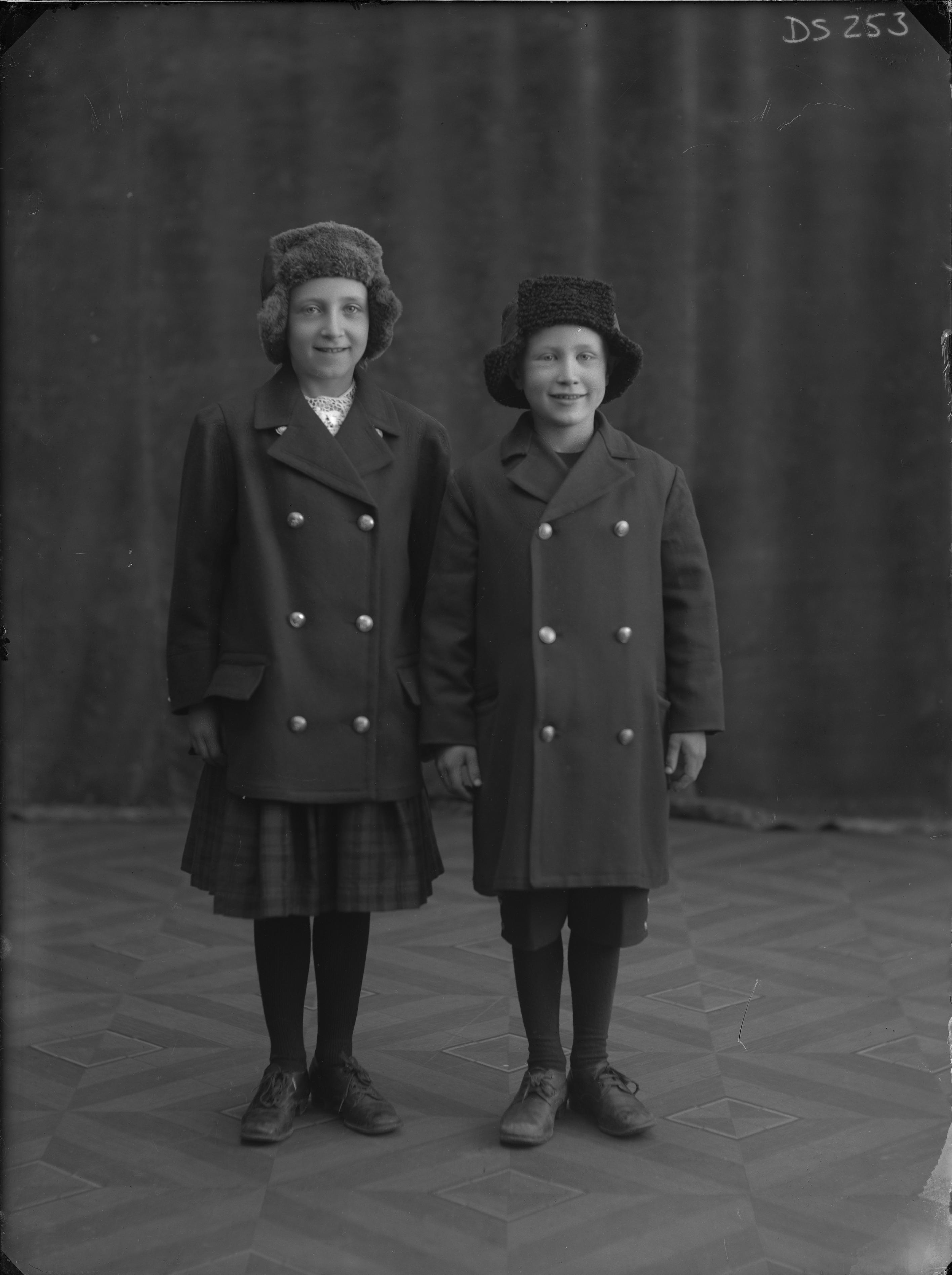 Två barn, helfigur. Vinterkläder. Gunhild o Sixten.