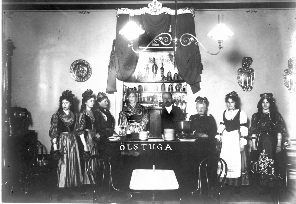 Titel: Vänersborg. Basar i Socitetssalongen, "Ölstuga".