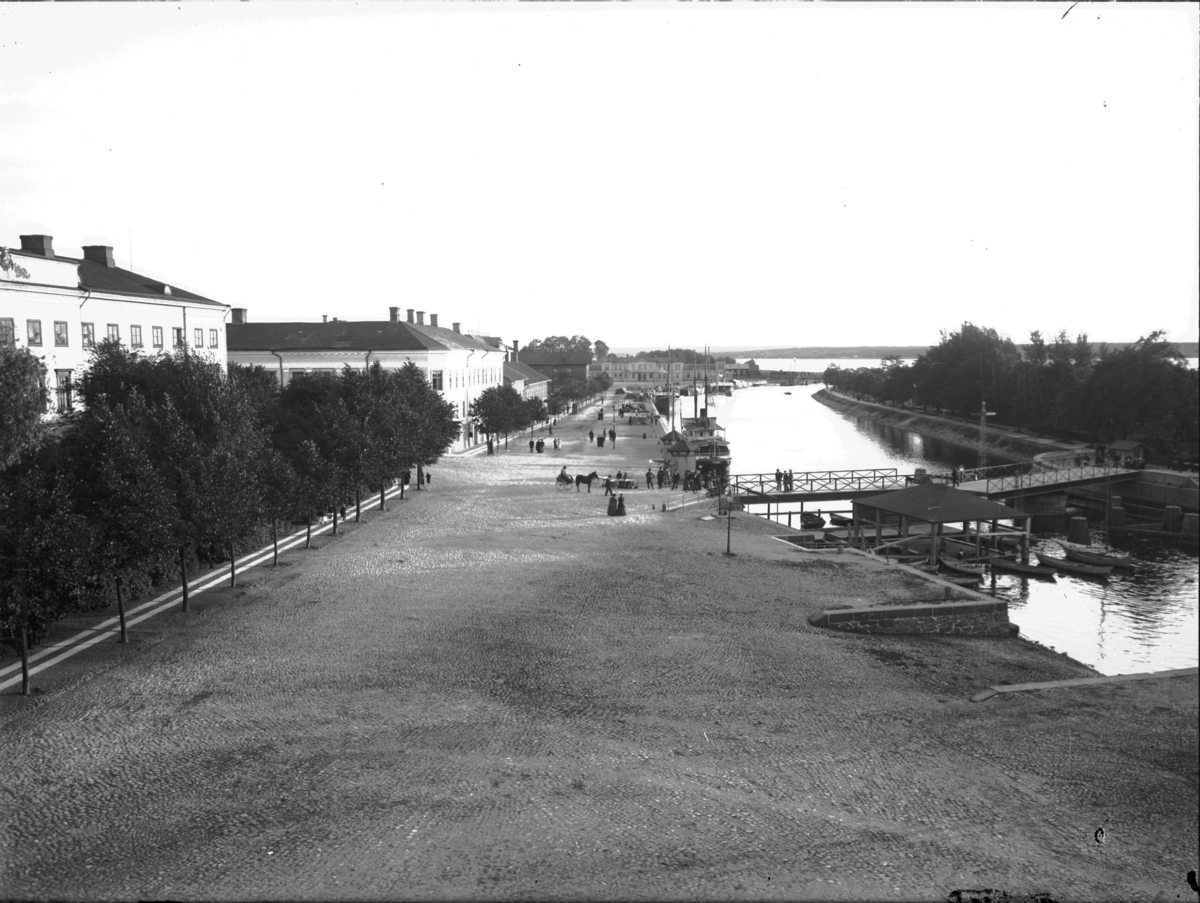 Vänersborg. Hamngatan och hamnkanalen fotograferad från Strömmerska