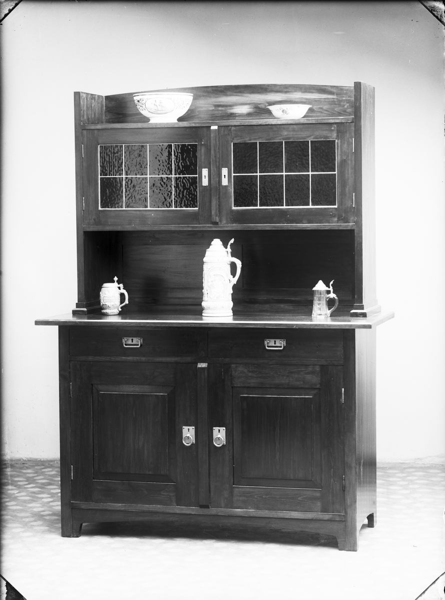 Titel: Möbler Slöjdtekniska skolan Vänersborg. Skänk med överskåp.