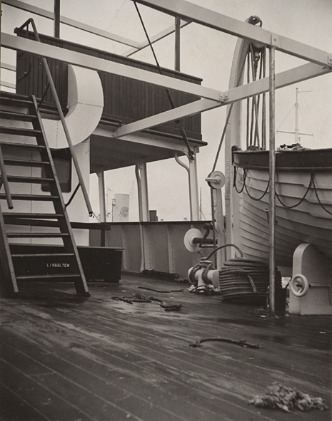 Lastmotorfartyget BRASIL av Stockholm, byggt i Göteborg 1935. Styrbords förliga livbåt och båtdäcket.