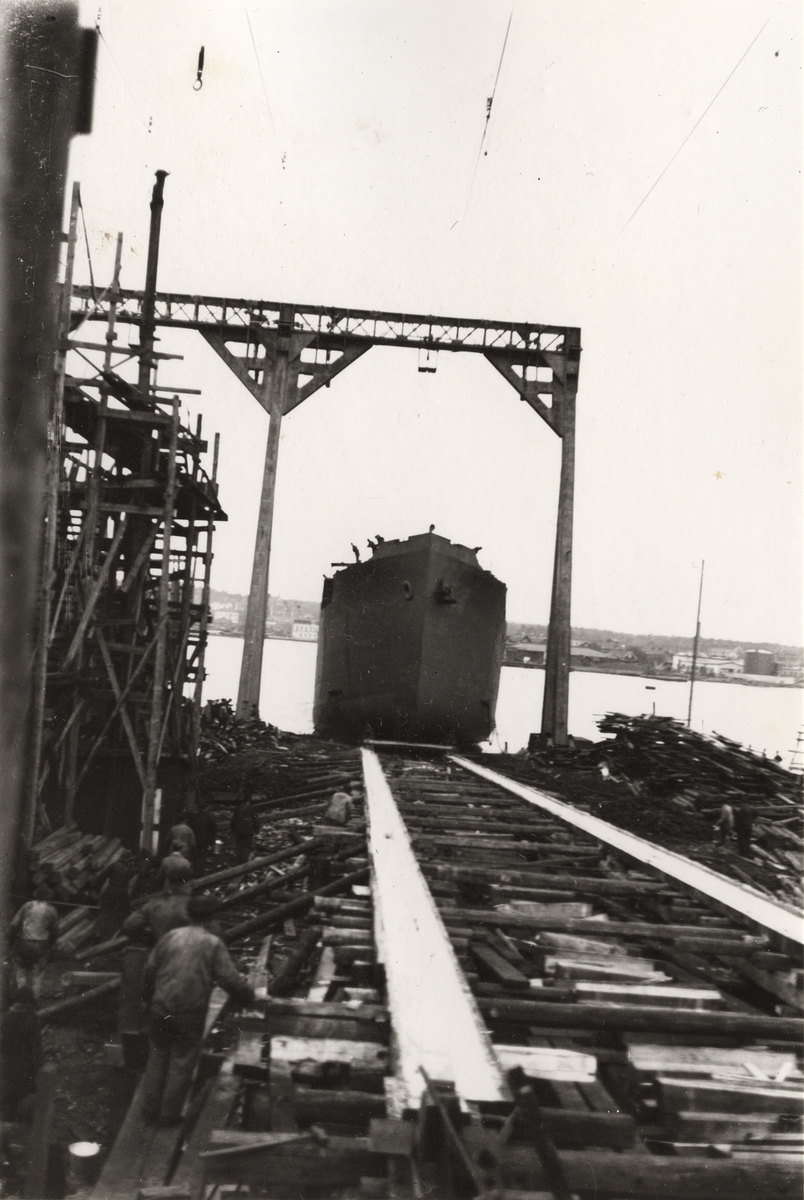 Stapelavlöpningen av lastångfartyget AASNE 1930.
