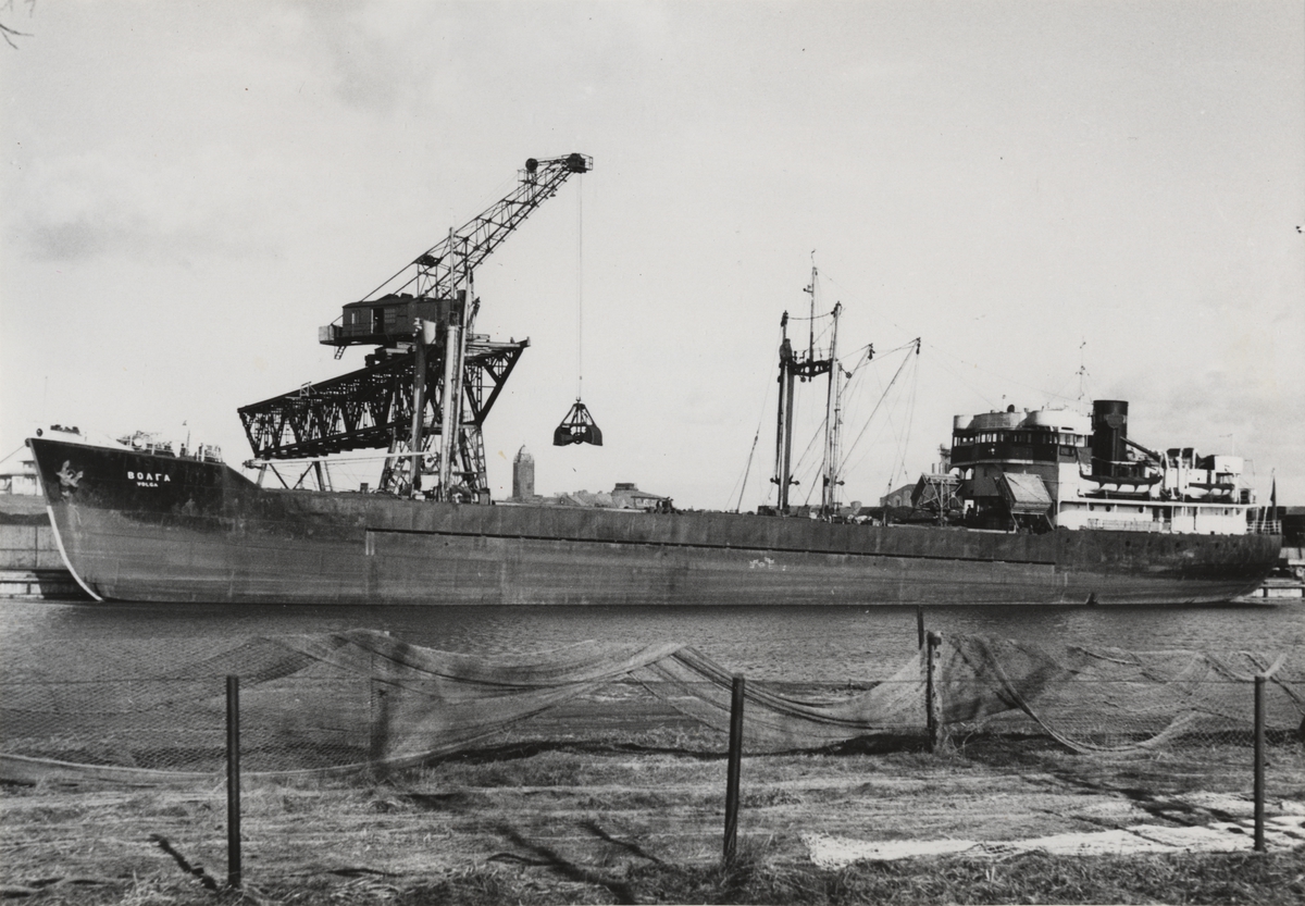 Lastmotorfartyget VOLGA av Odessa liggande i Trelleborg 17 mars 1953.