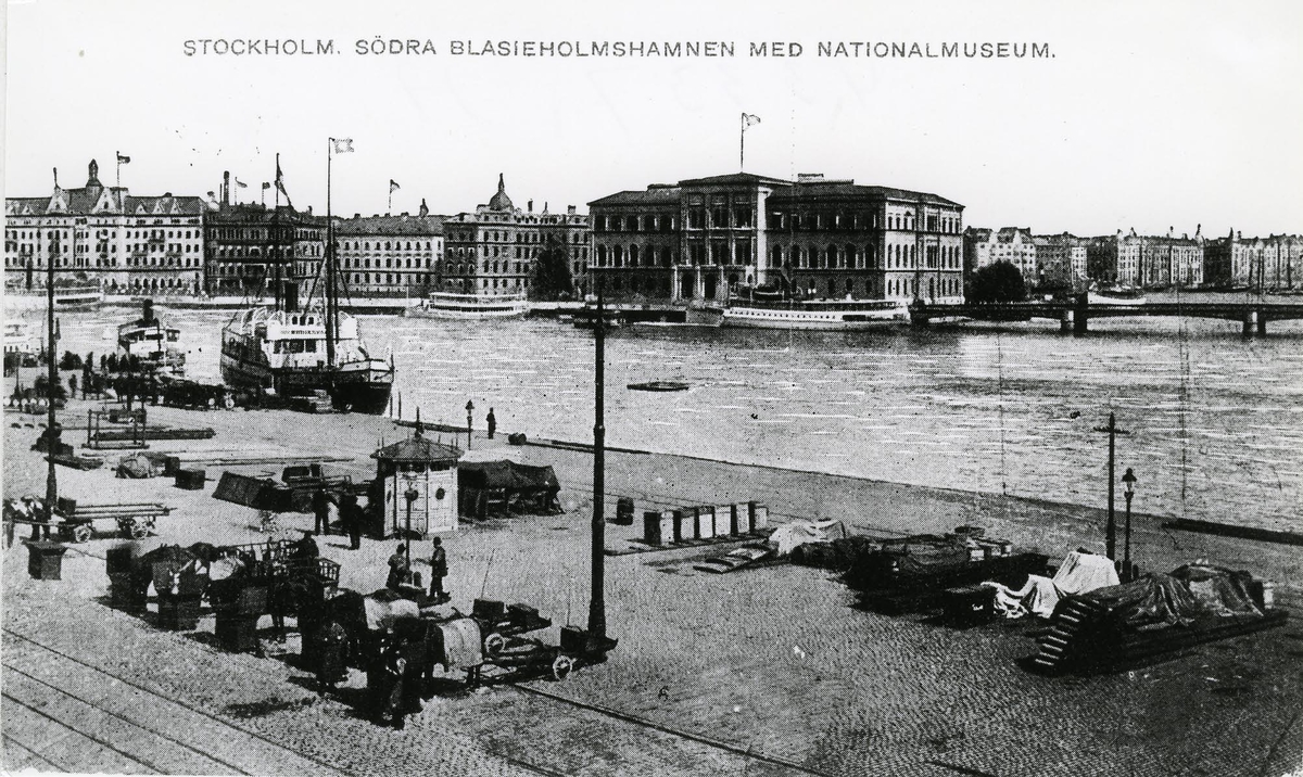 Södra Blasieholmshamnen med Nationalmuseum omkring 1907.