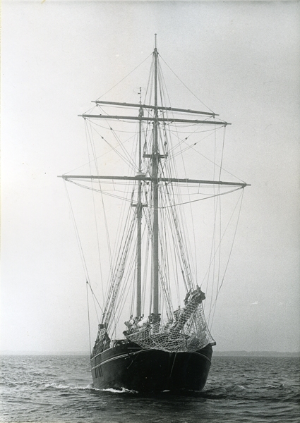 Holms skeppsvarv. Skonaren Wetsera, från Tyresö, (och) som blivit ombyggd till lustfartyg går ut på provtur 1961. Skåne, Malmöhus län, Råå.