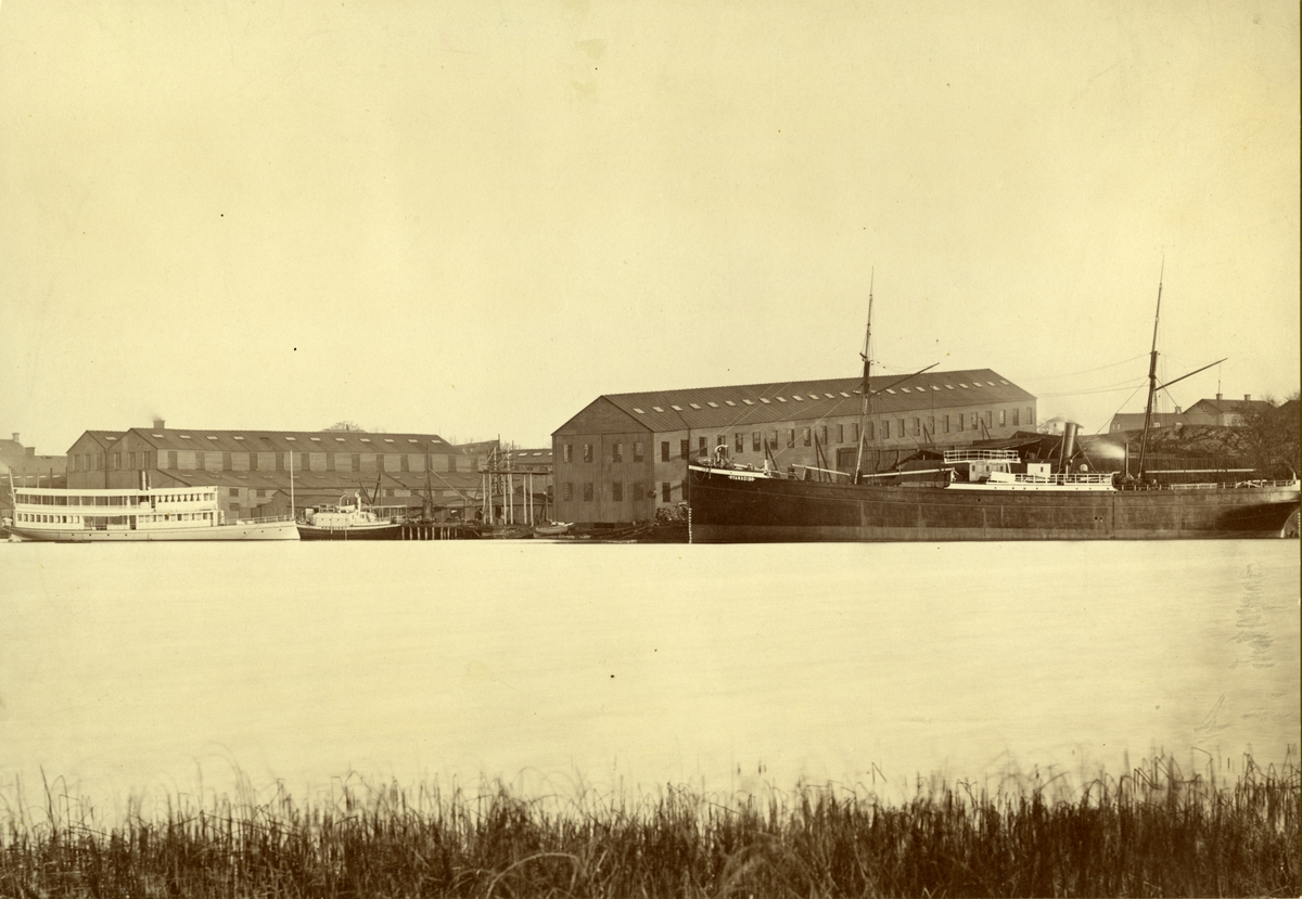Frv S/S Victoria, nybyggd (på spekulation), S/S Brokind b 1878 och till höger lastångaren Vanadis byggd 1879.
