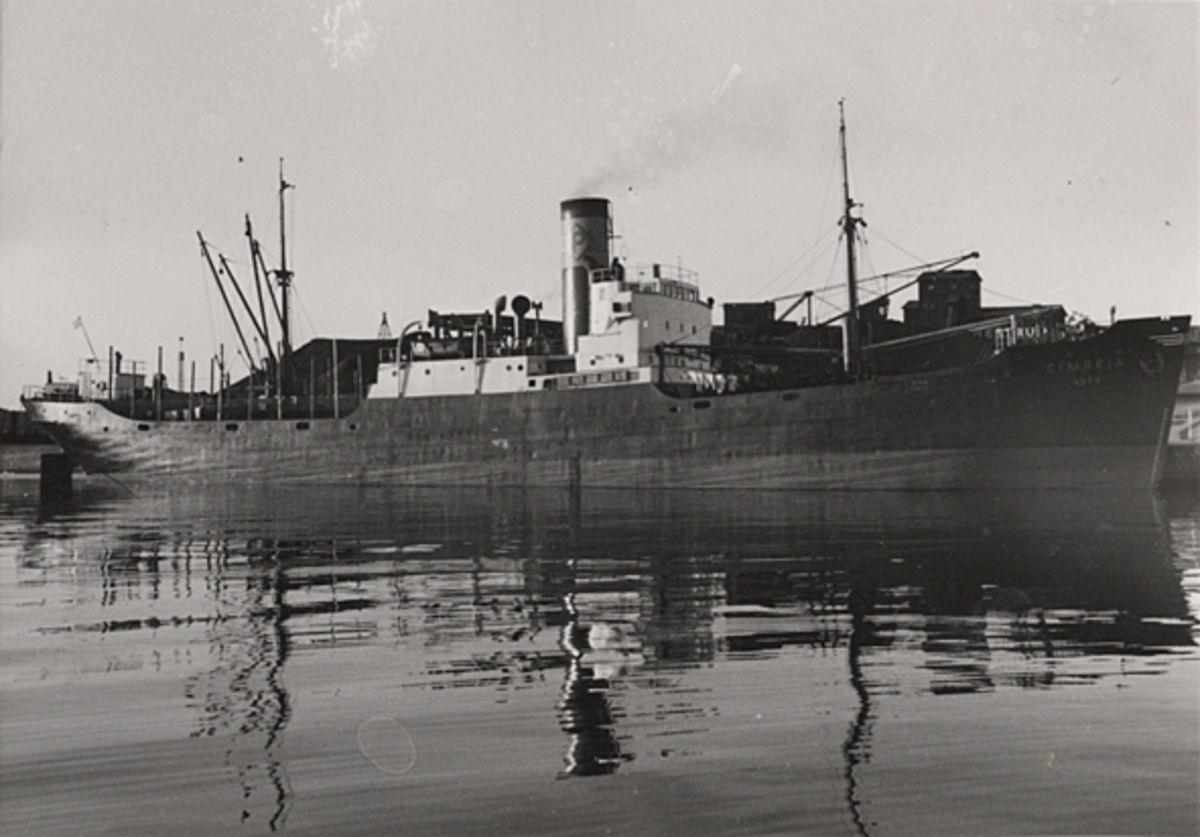 Det västtyska lastångfartyget CIMBRIA av Flensburg lossar koks i Malmö den 4 april 1950.
