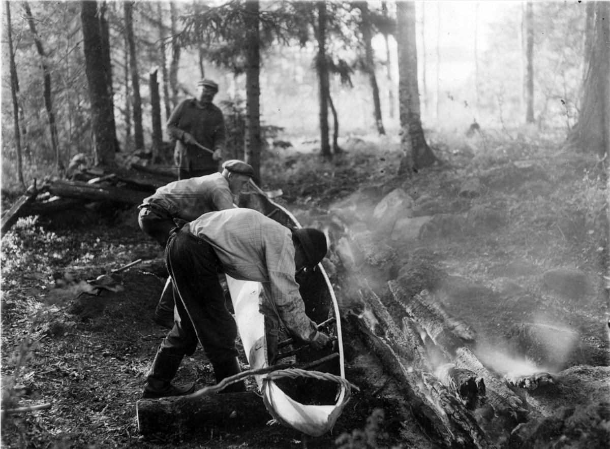Det ena bordet spännes ut. Gåva av Institutet för folklivsforskning 1953. tryckt i Folk-Liv 1947
