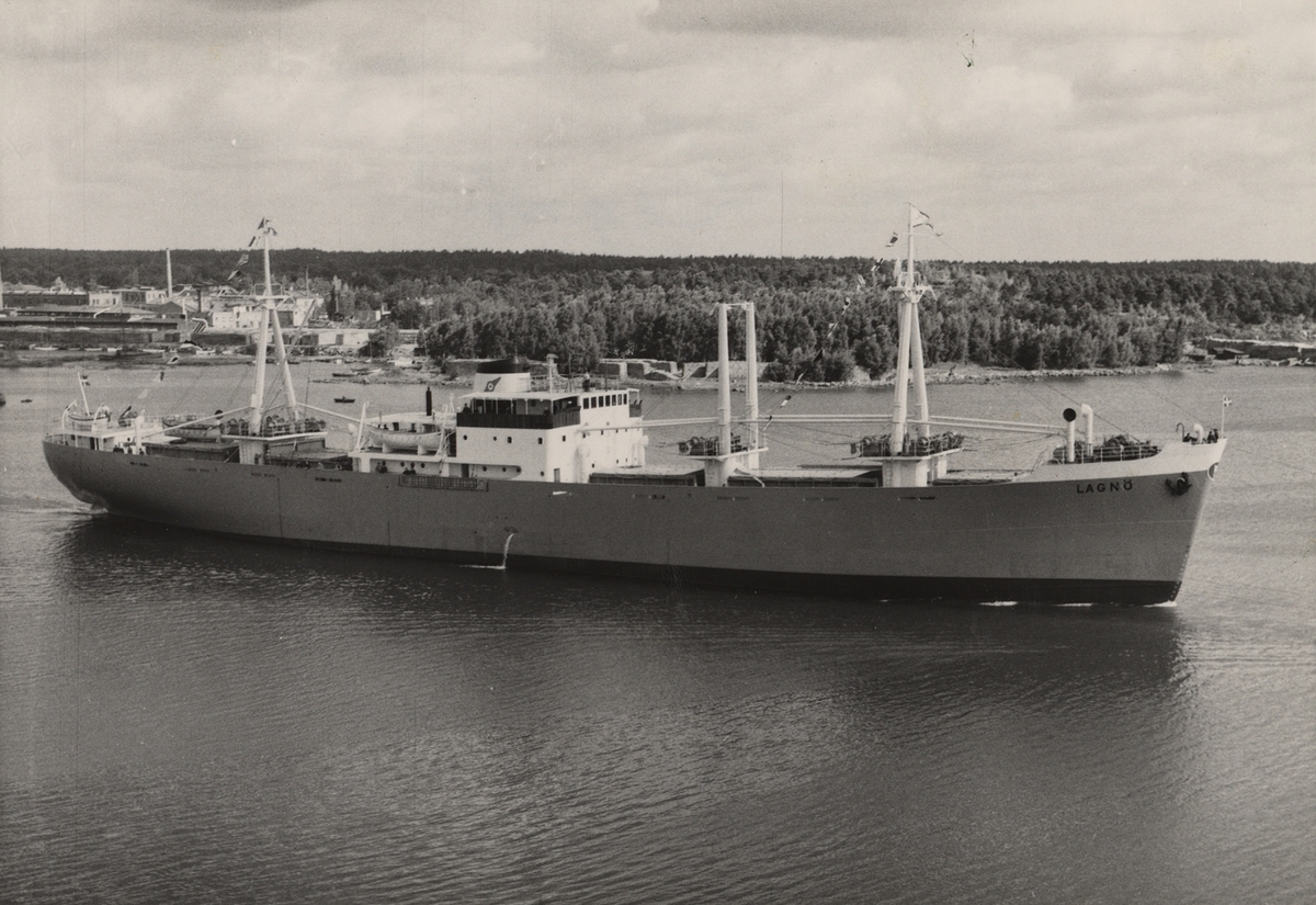 Lastmotorfartyget LAGNÖ av Stockholm på provtur 1953. Fartyget levererat 9/7/1953.