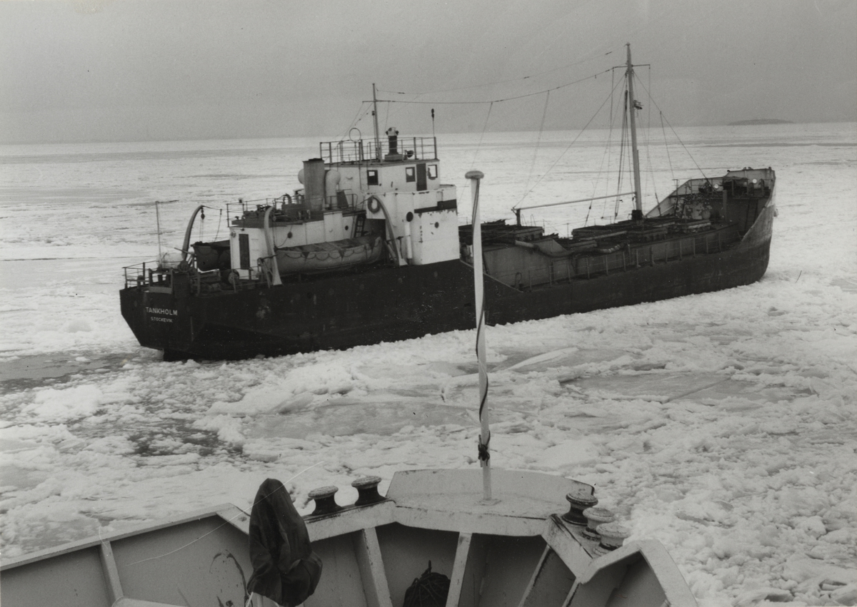 Tankmotorfartyget TANKHOLM av Stockevik. Fartyget i Öresundsisen den 21 mars 1963.